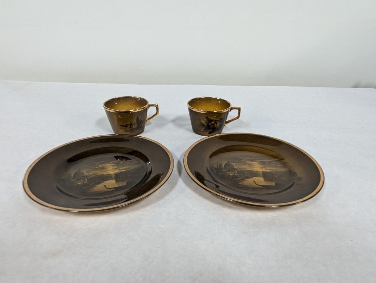 Vintage Ridgways Royal Vistas Ware Plates & Cups - Scene by Famous Artist