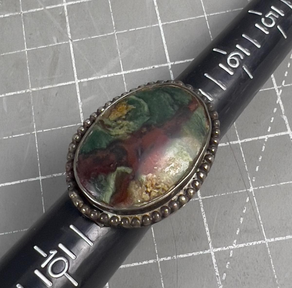 Vintage Ring with Unakite Stone, Cabochon Shape