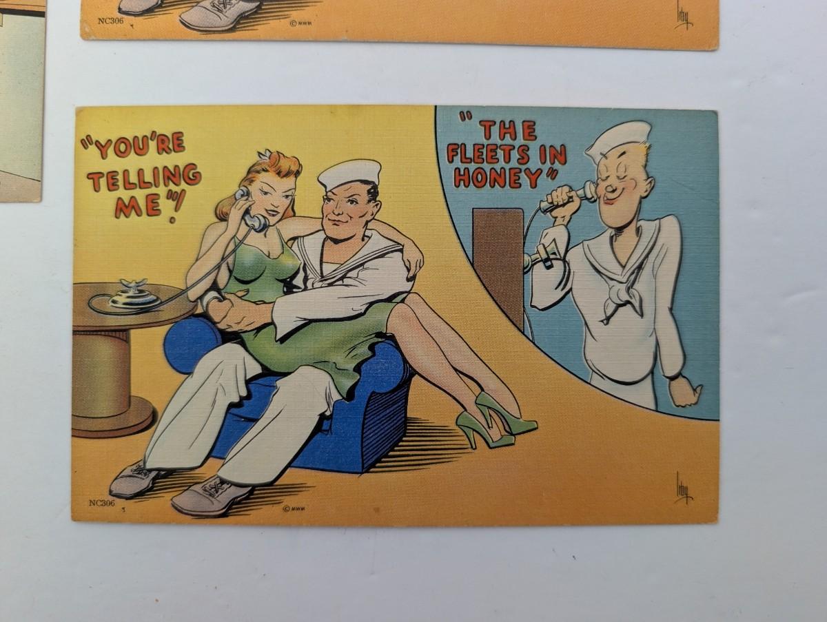 Vintage Risqué Comic Postcards Lot of 5 Saucy Sailor Humorous Pin Up Style Collectibles