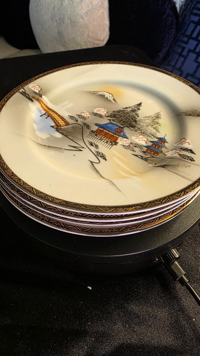 Ideal for display on a wall, in a china cabinet, or as the centerpiece of a curated collection, these 4 plates embody the grace of mid-century Japanese artistry. Their thin, luminous body and painterly detail reflect a time when tableware was made to be admired as art.