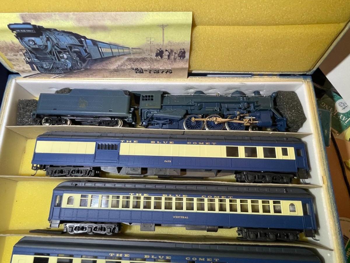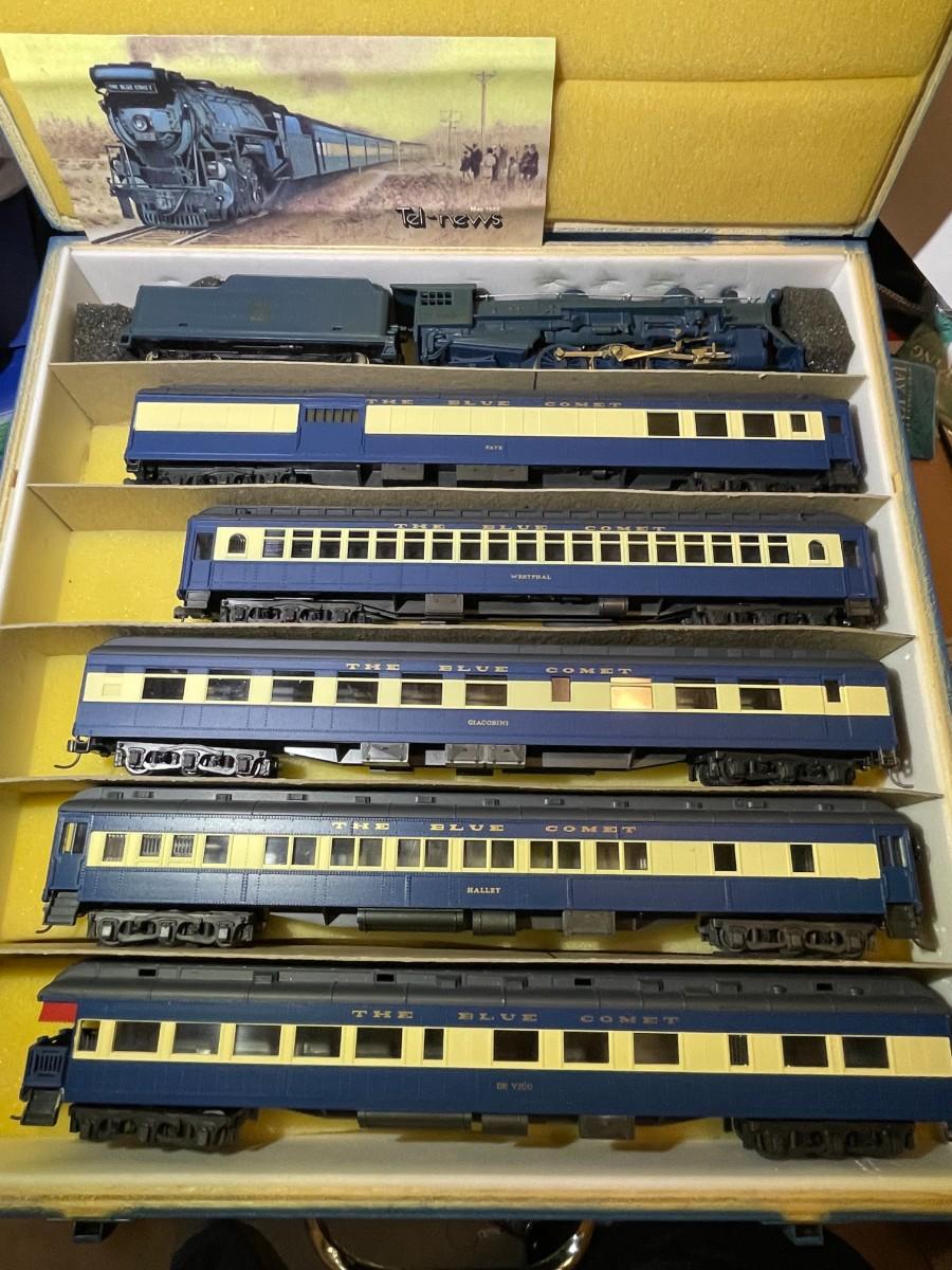 Vintage RIVIROSSI HO The BLUE COMET CNJ 4-6-2 Engine & 5 CAR PASSENGER SET w/Original Boxes and a Custom Converted Wine Wooden Box. Pristine Condition.