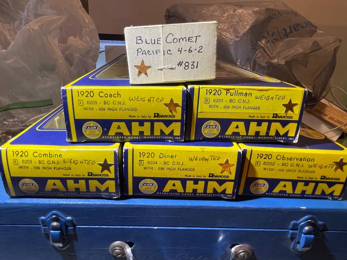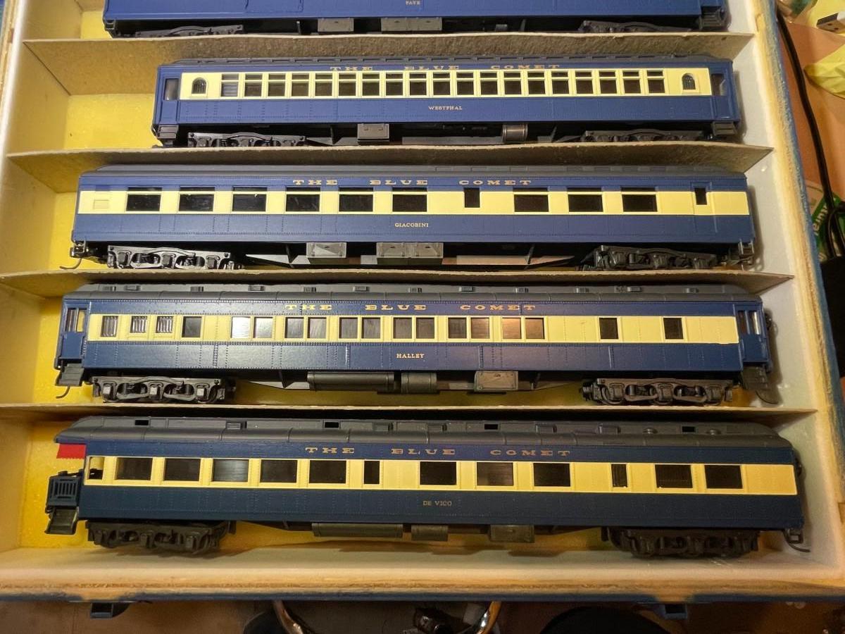 Vintage RIVIROSSI HO The BLUE COMET CNJ 4-6-2 Engine & 5 CAR PASSENGER SET w/Original Boxes and a Custom Converted Wine Wooden Box. Pristine Condition. $15 Domestic Shipping.