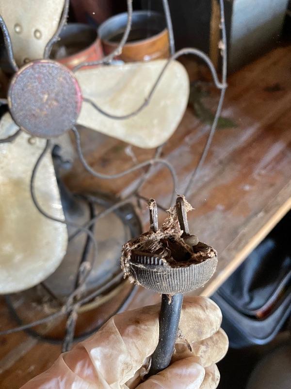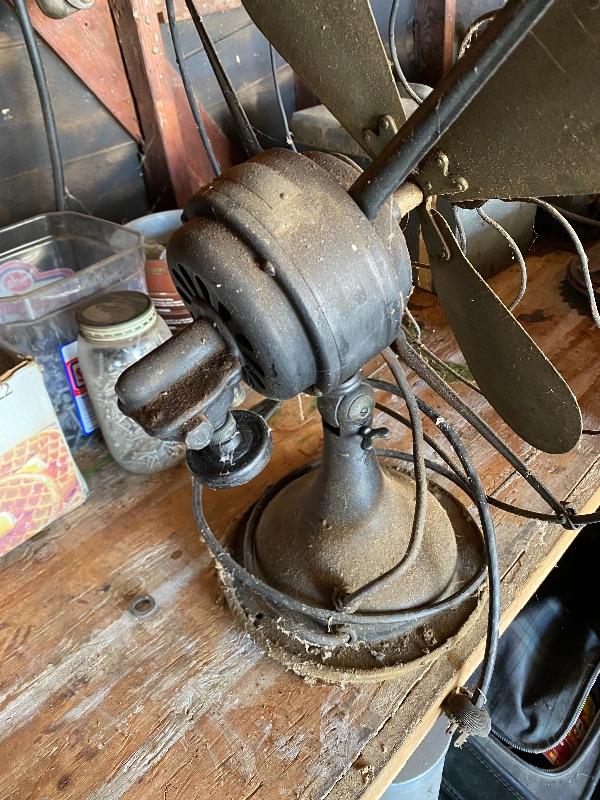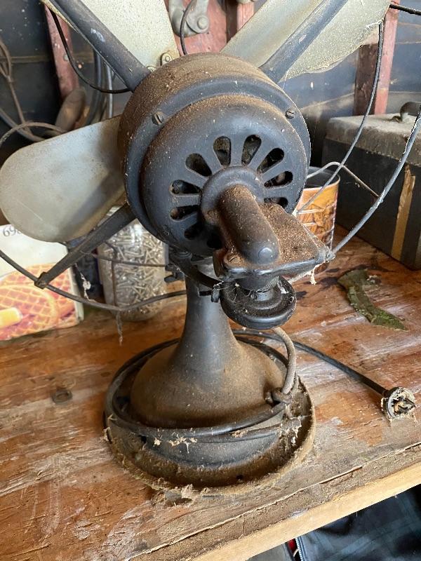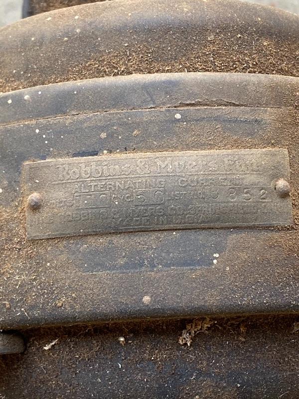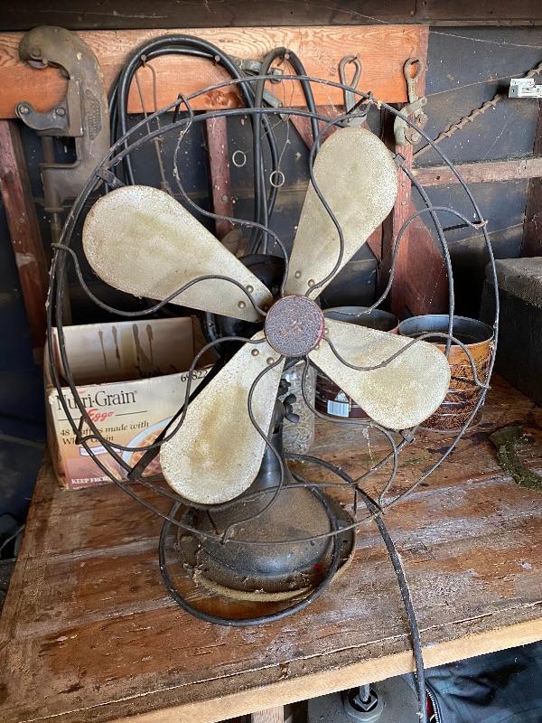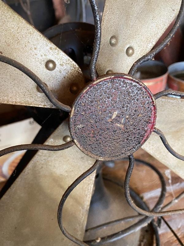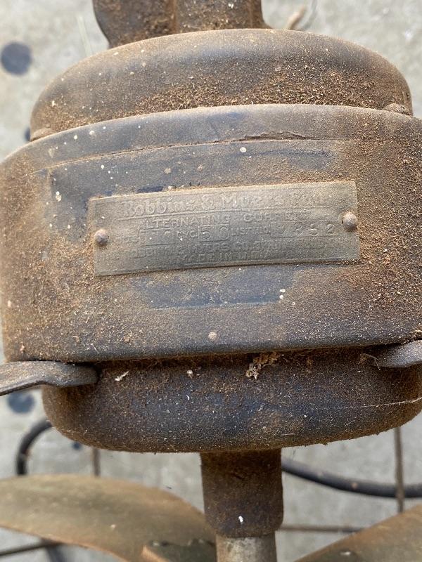 Vintage metal Robbins & Myers 16" oscillating fan. 4 metal blades. Dirty from years of use in garage. Still has original cord. Did not test. Displays nice.