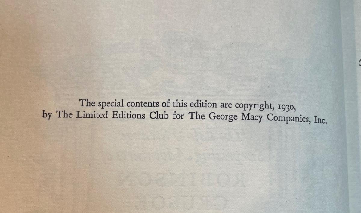 Copyright 1930, by Daniel Defoe. From the Heritage Press in New York.