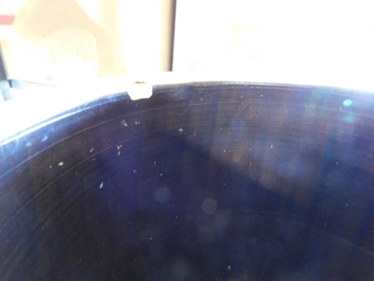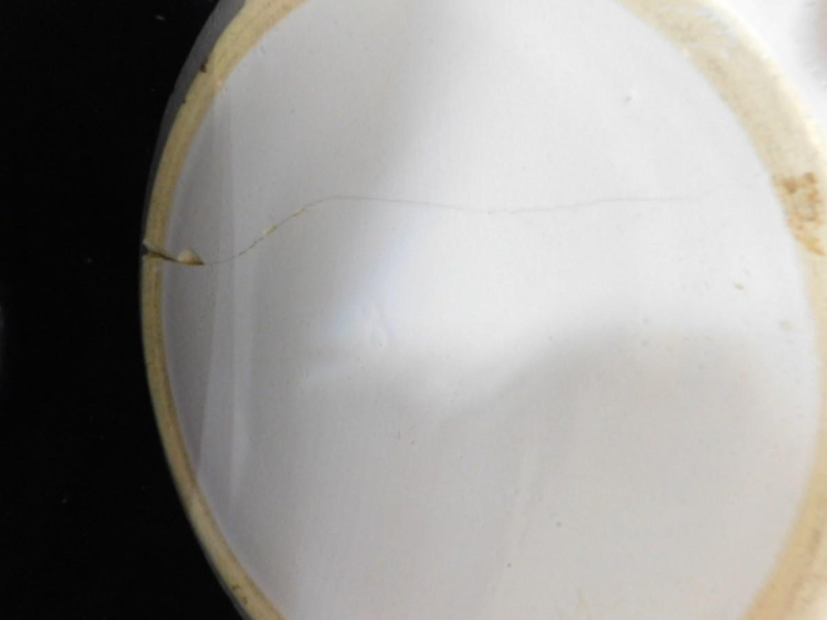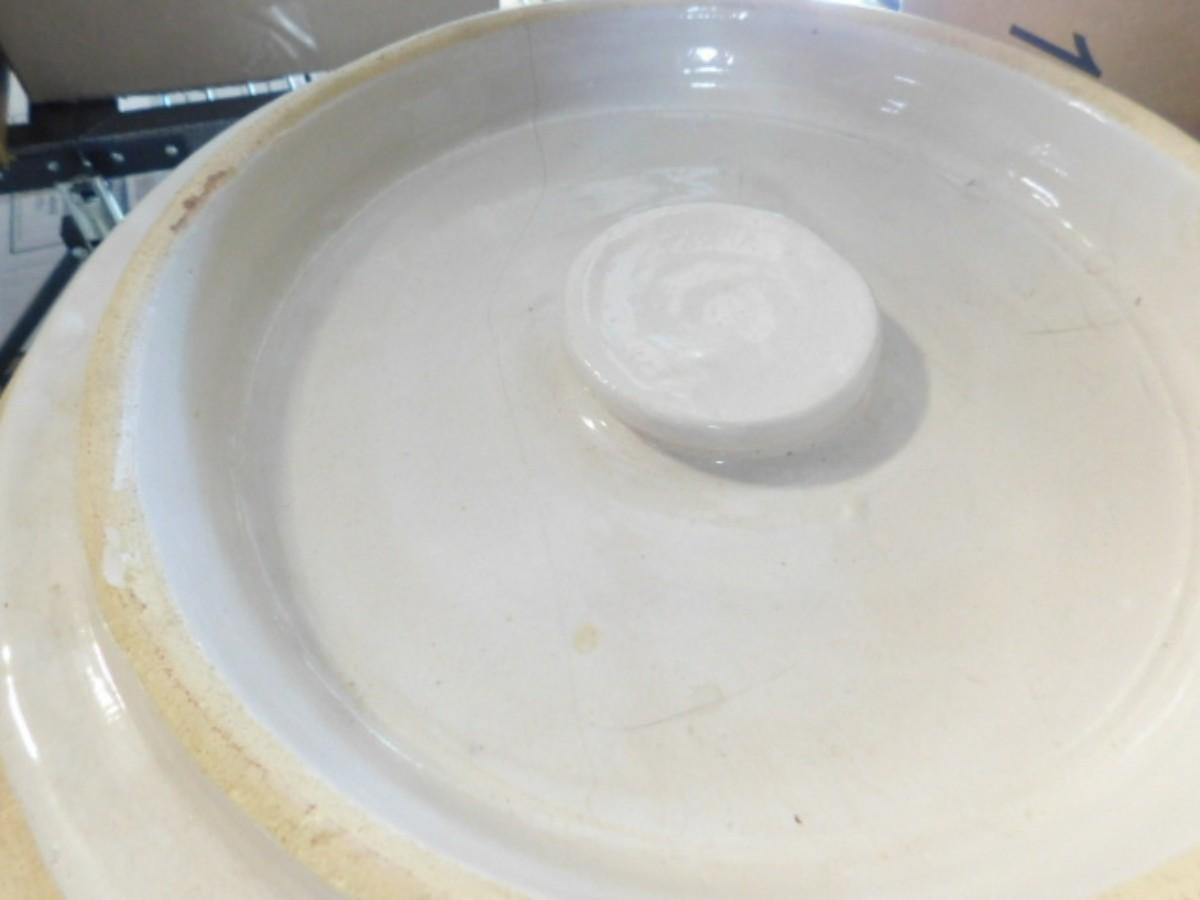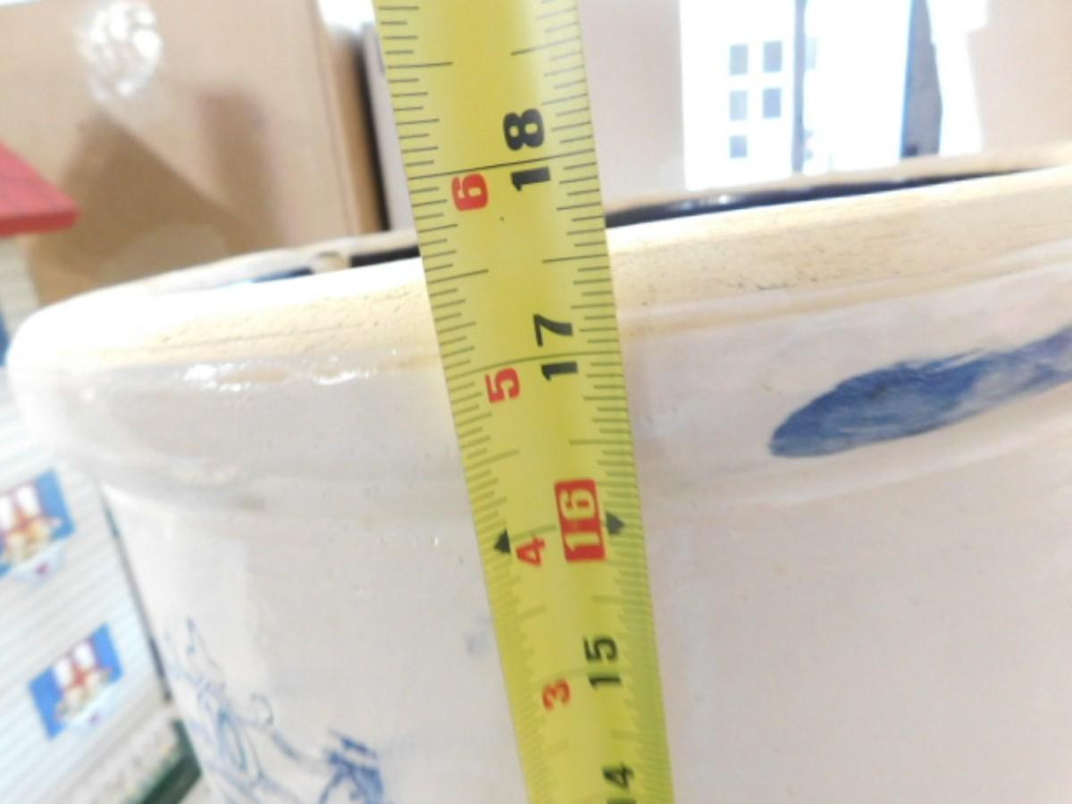 Vintage Robinson Ransbottom #10 Crock with Lid. The lid has cracks as shown with a minor imperfection on inside lip of crock as shown