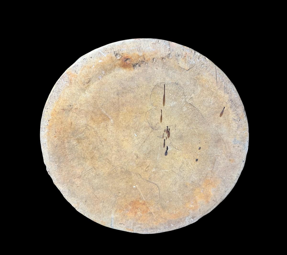 Five gallon capacity. There are some chips on the bottom. [KD]