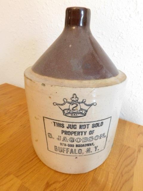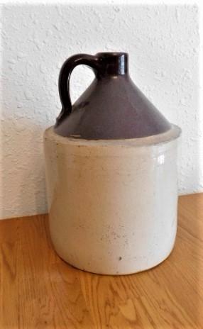 Vintage Robinson Ransbottom Pottery #2 Blue Crown Two Tone Whiskey Jug Advertising