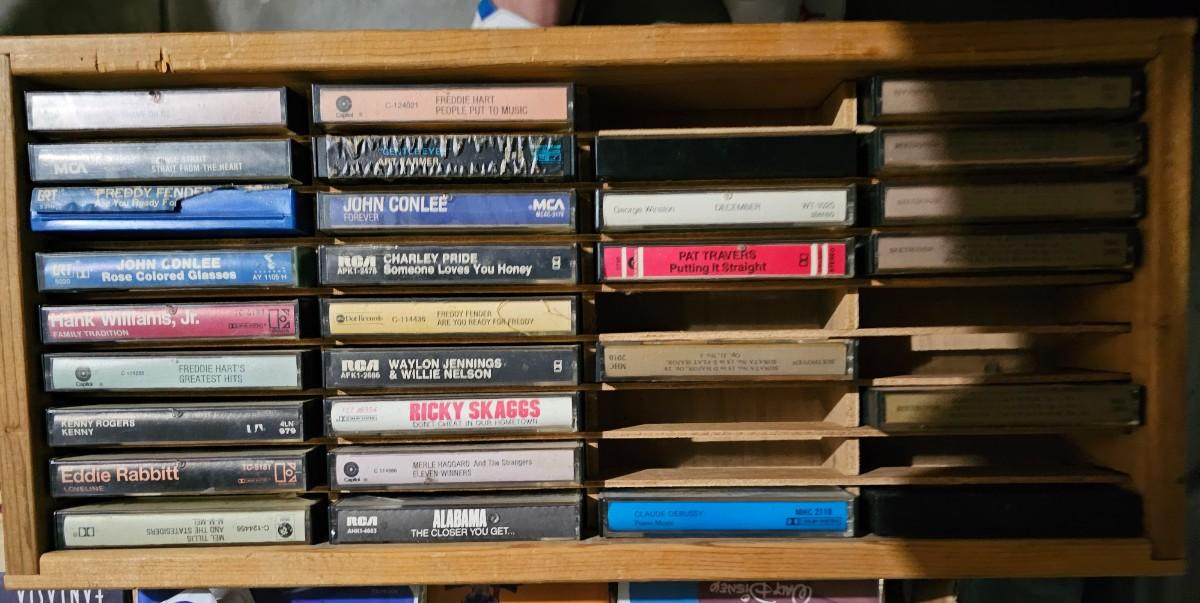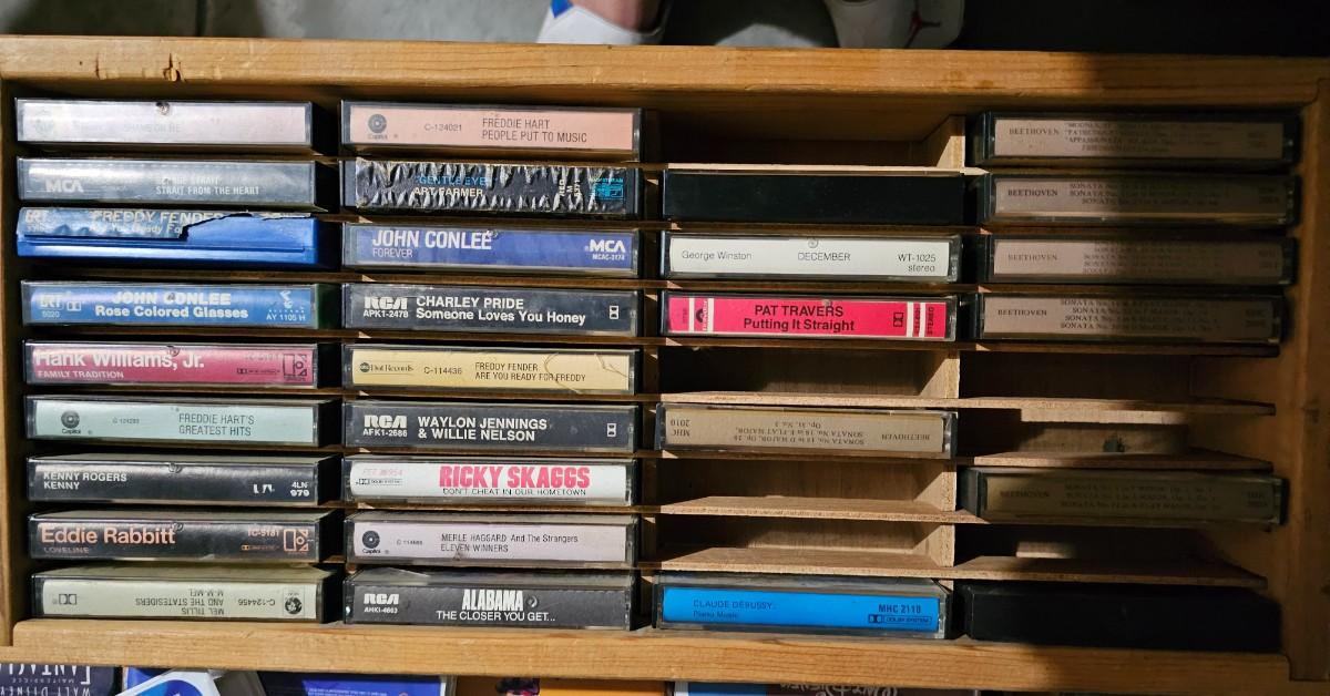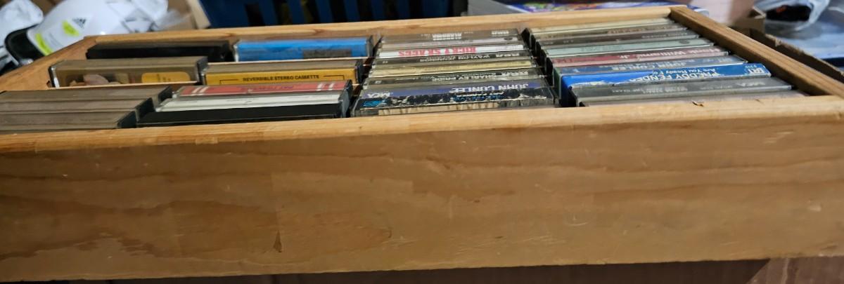 Vintage Rock and Country Cassettes with Antique Wood Case