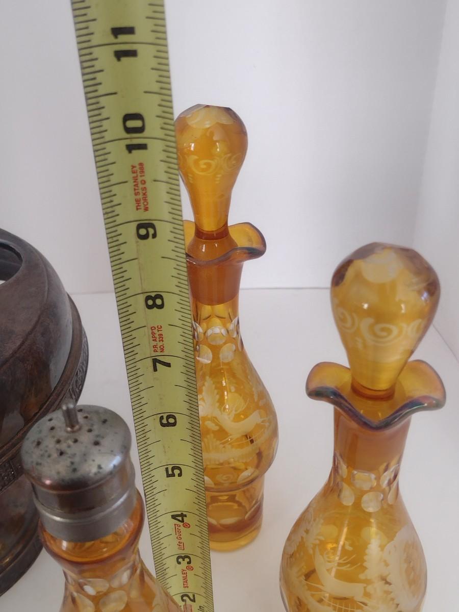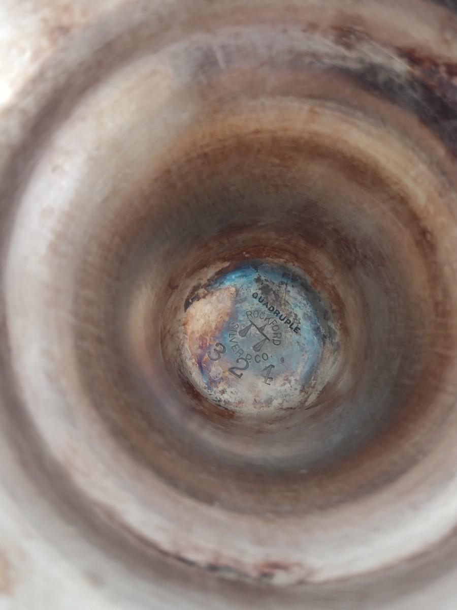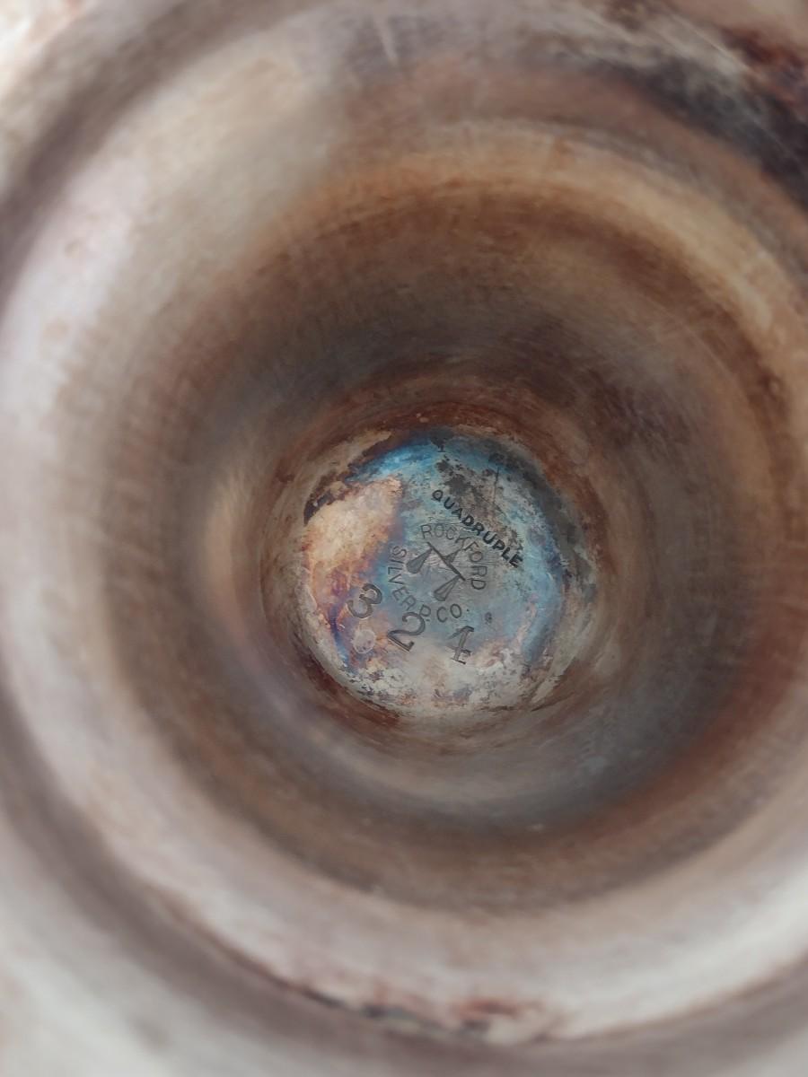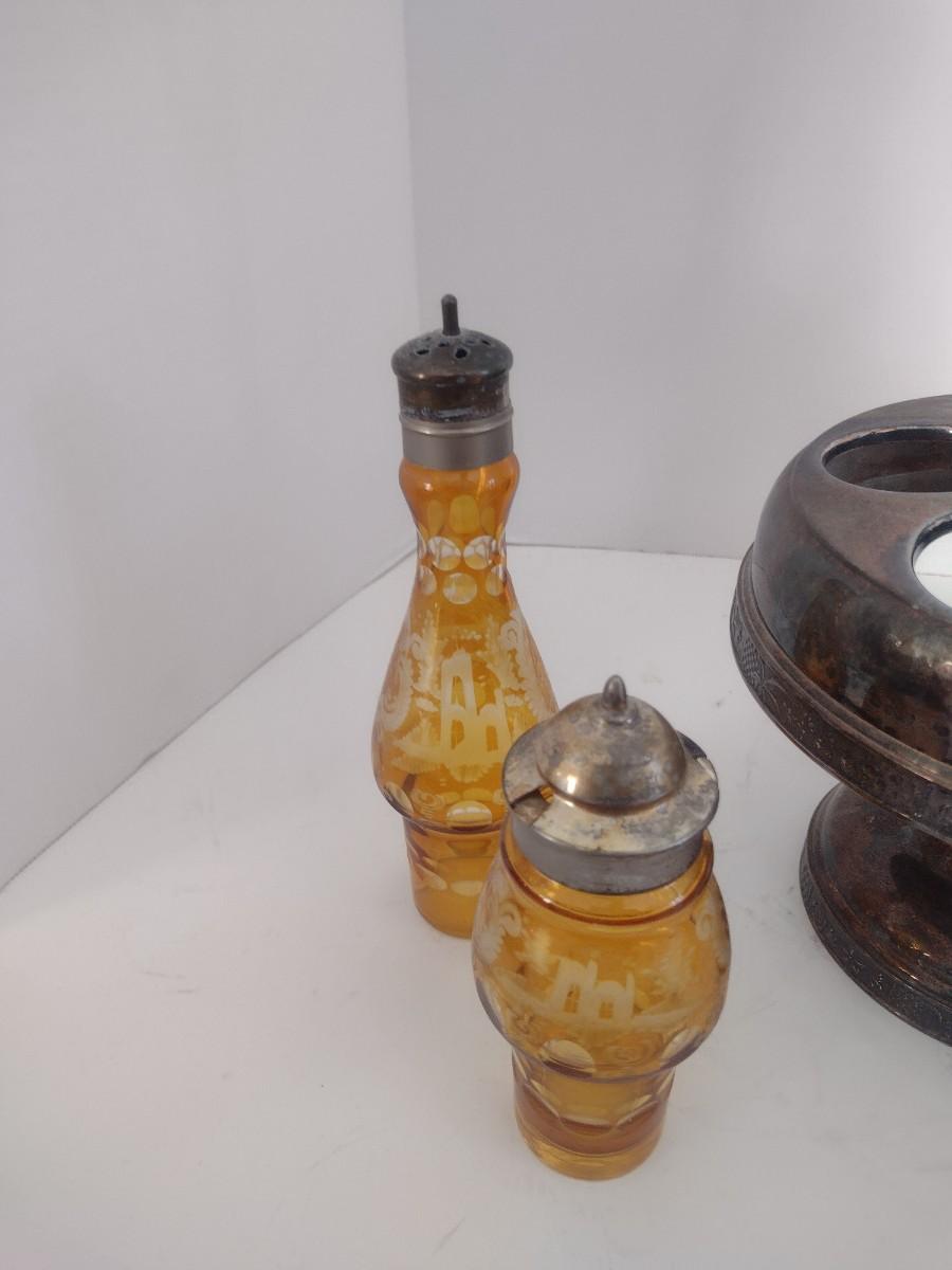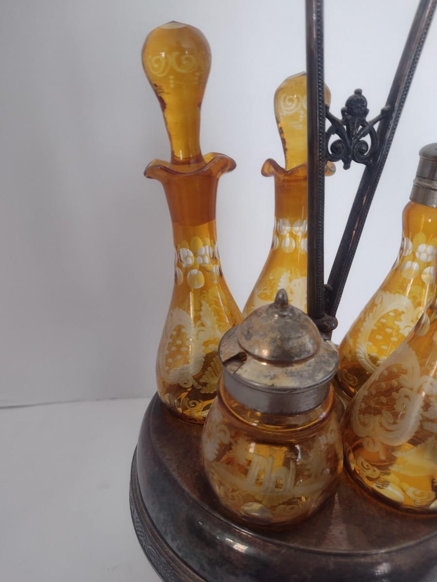 Vintage Rockford Silver Company Quadruple Plated Five Bottle Amber Glass Caster Cruet Set