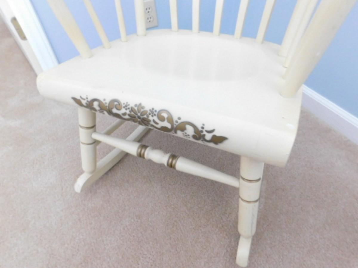 Vintage Rocking Chair with Hand Painted Head Rest downstairs item