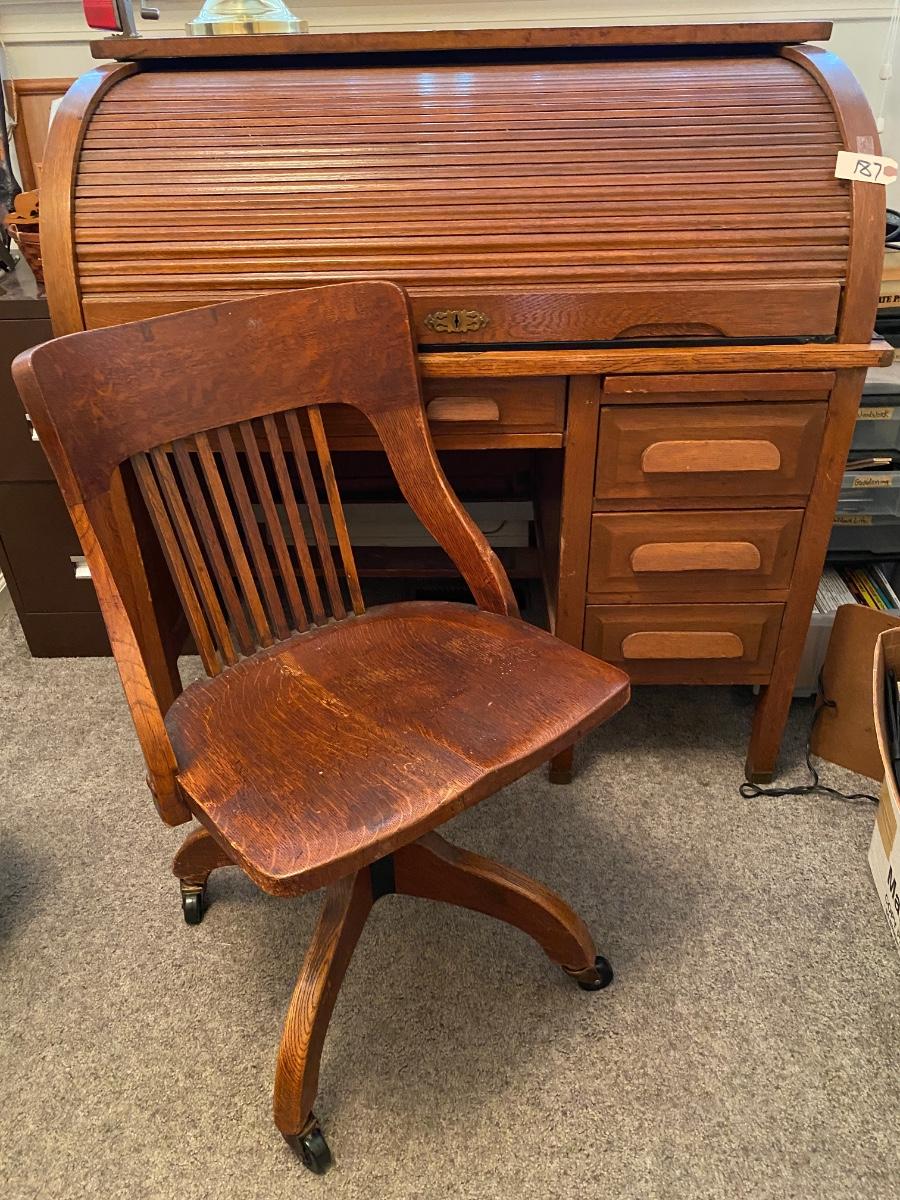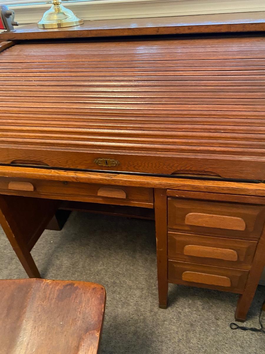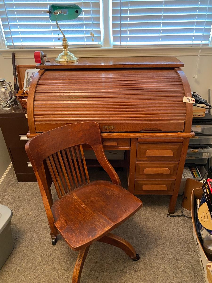 Vintage Roll Top Desk w/ Chair 43x40x32