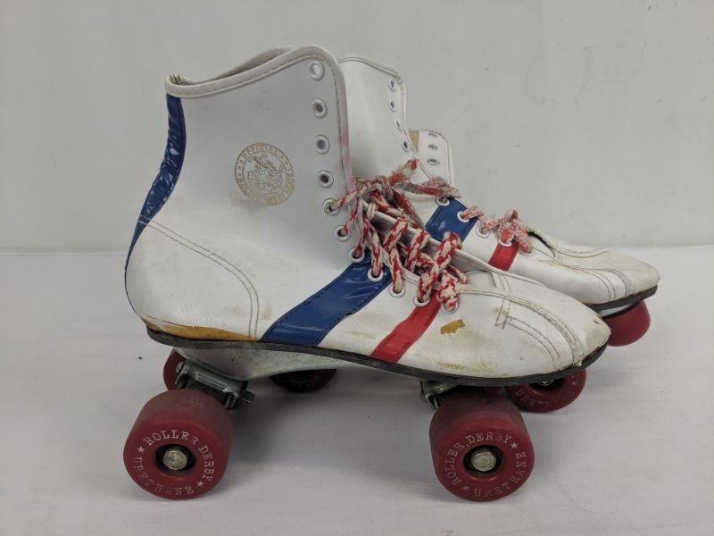 Vintage Roller Derby Skates, Size 34, Urethane - Peeling Leather, Marks