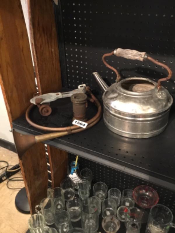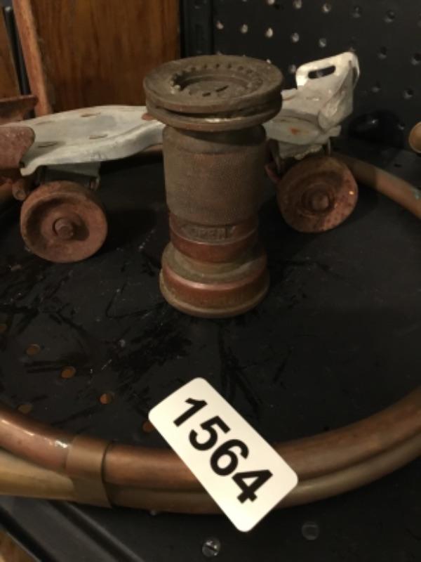 Vintage roller skate, horn, tea pot and fire house nozzle Powhatan lot 1564