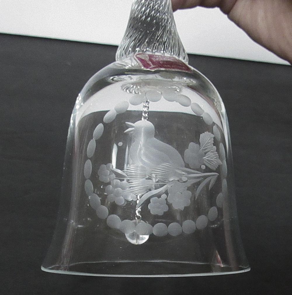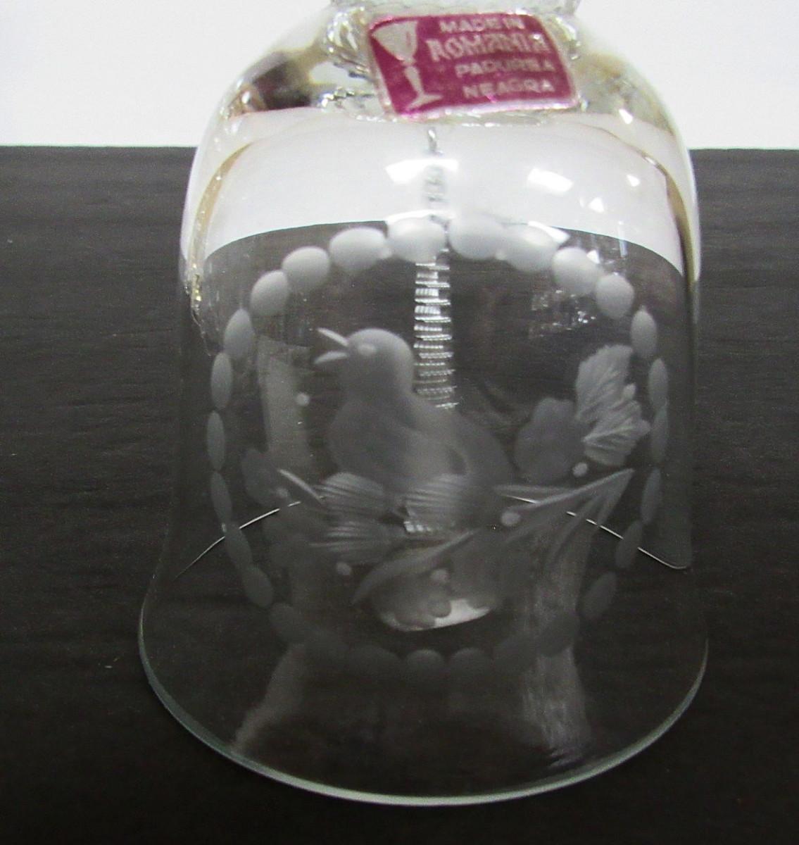 Pretty Cut Bird Theme Vintage Romanian Crystal Glass Bell, Padurea Neagra