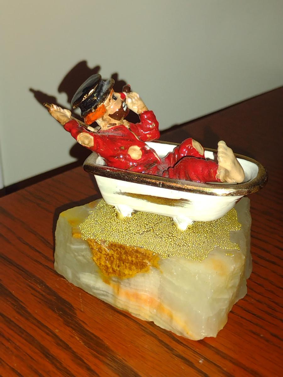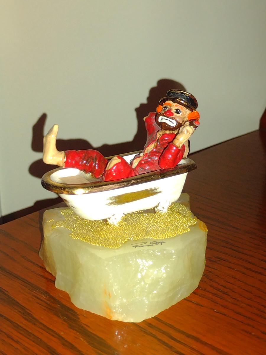 Vintage Ron Lee Clown Figurine on Stone Base- Red Skelton in Tub (1984)