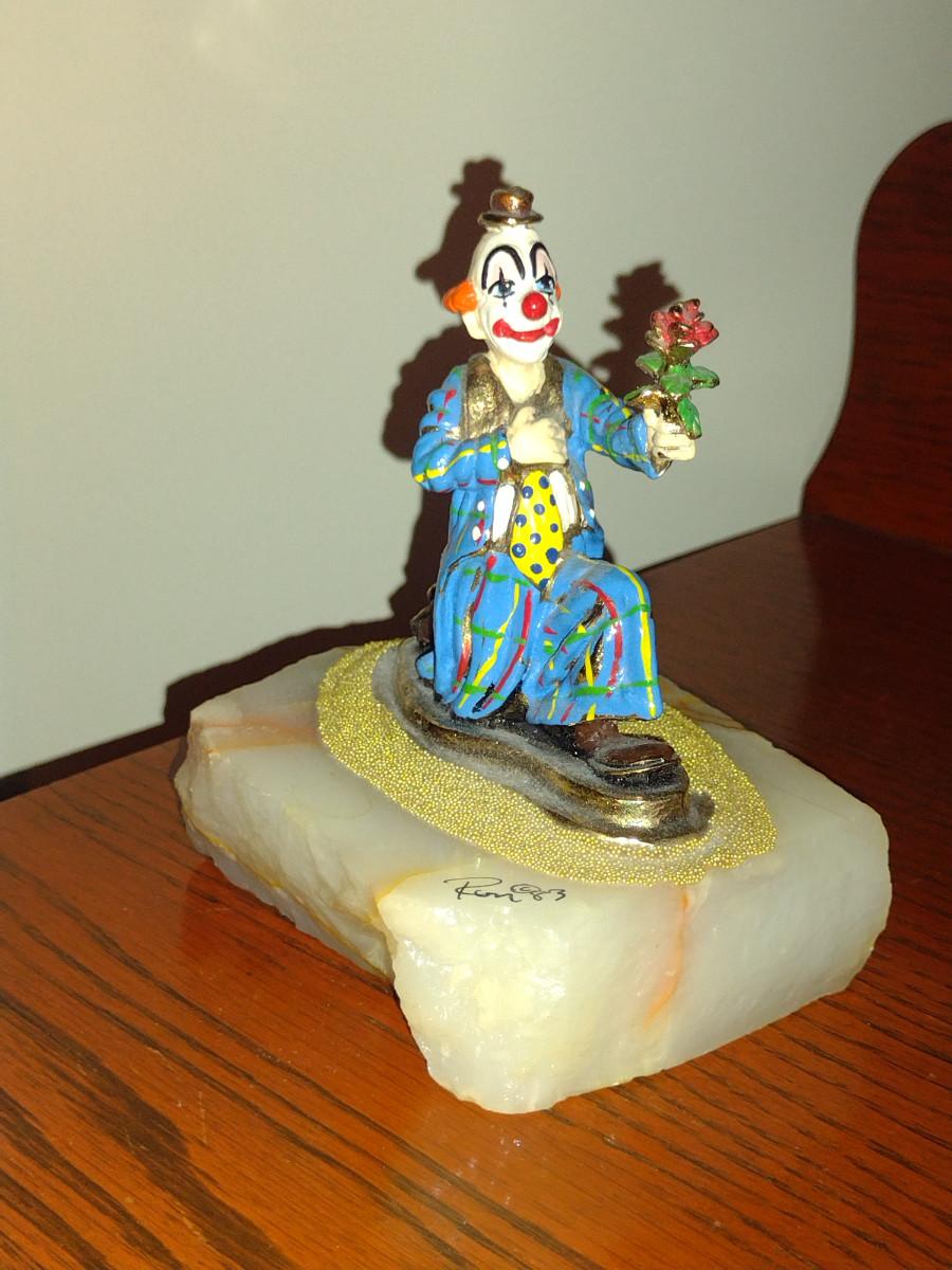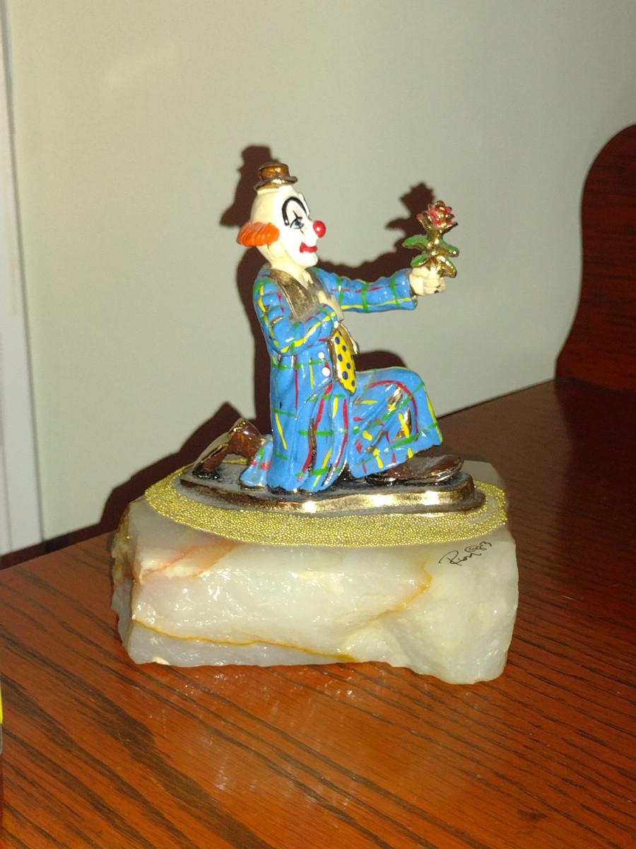 Vintage Ron Lee Clown Figurine on Stone Base- On Bended Knee (1983)