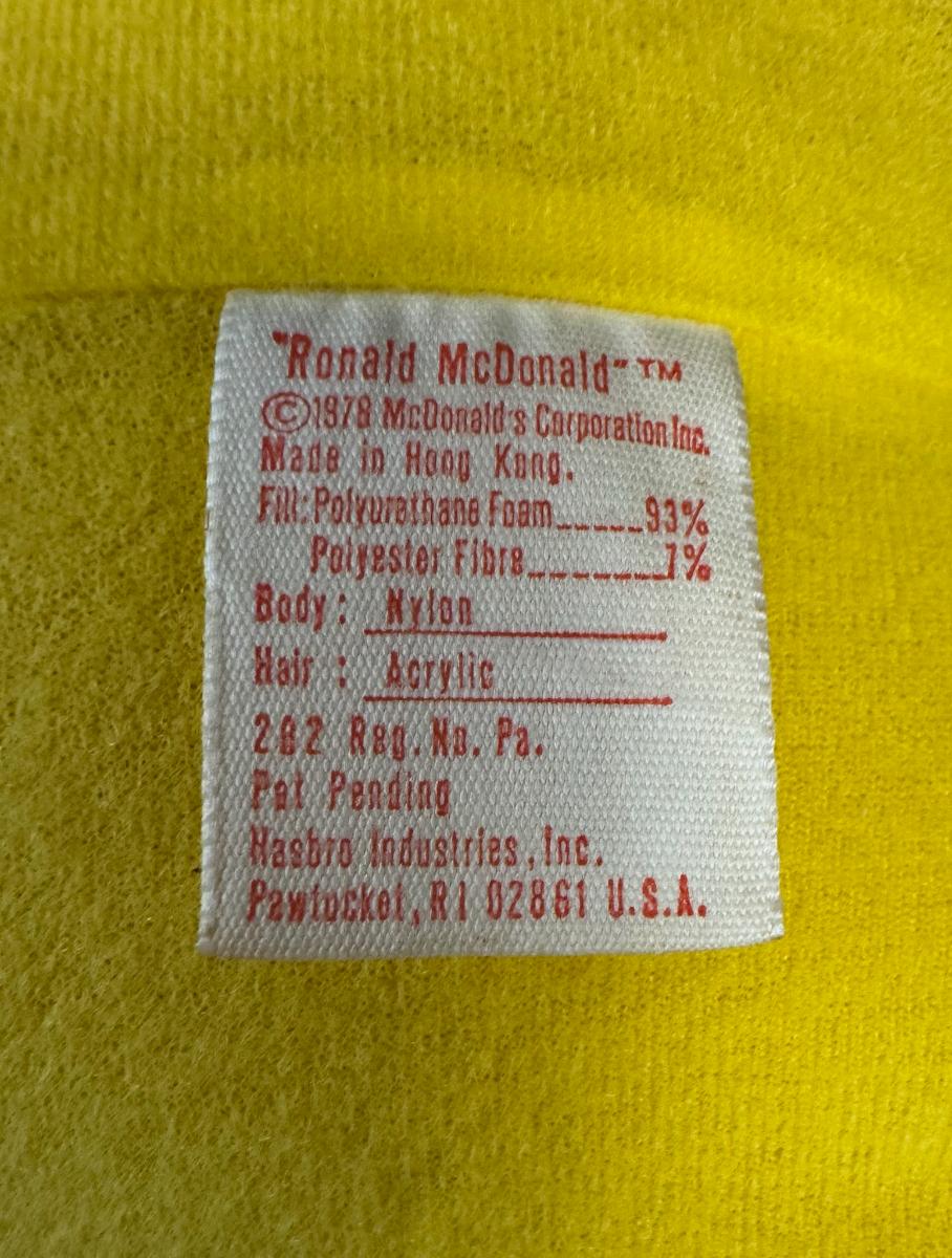 Made by Hasbro for McDonalds. One shoe has been reattached. Age related wear. Measurement: 20"H. [JP]