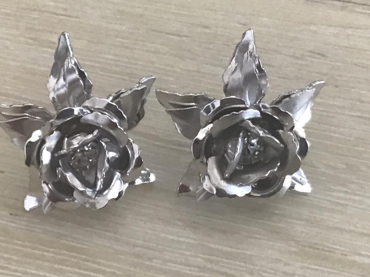 Vintage Rose and Rhinestone Earrings