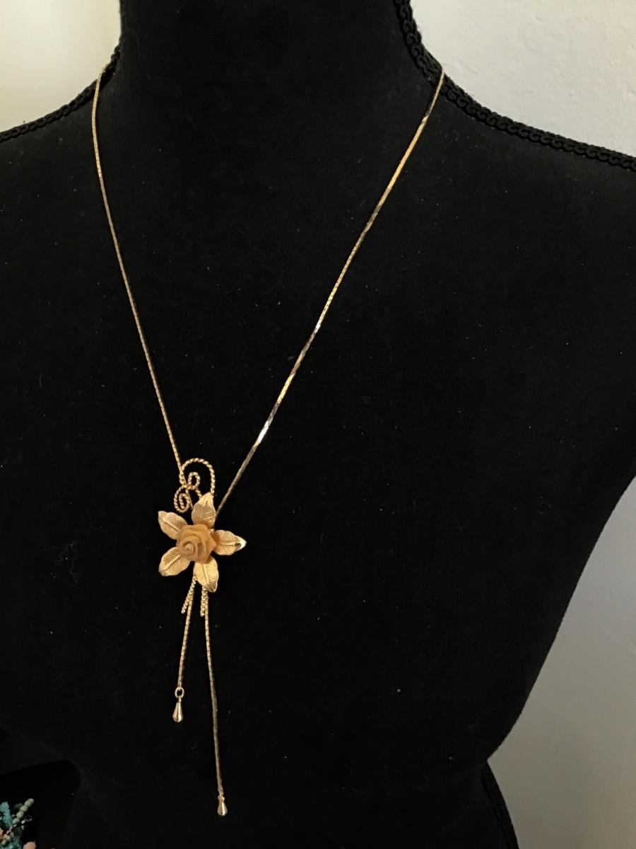 Vintage Rose Lariat Slider Necklace