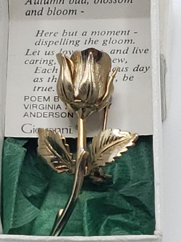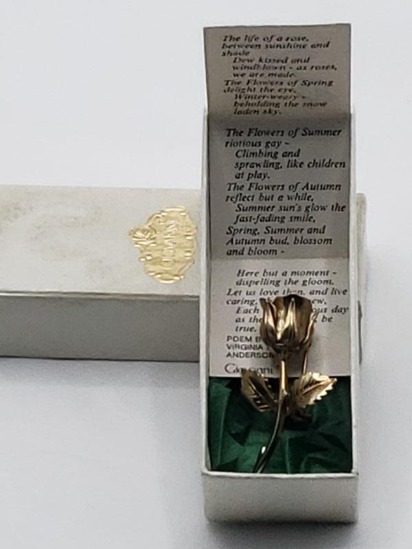 Box is dirty but excellent condition. Rose pin in excellent condition.