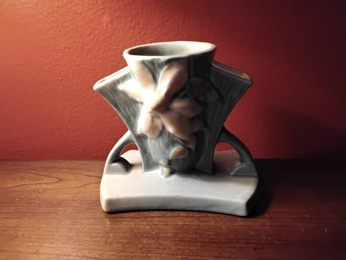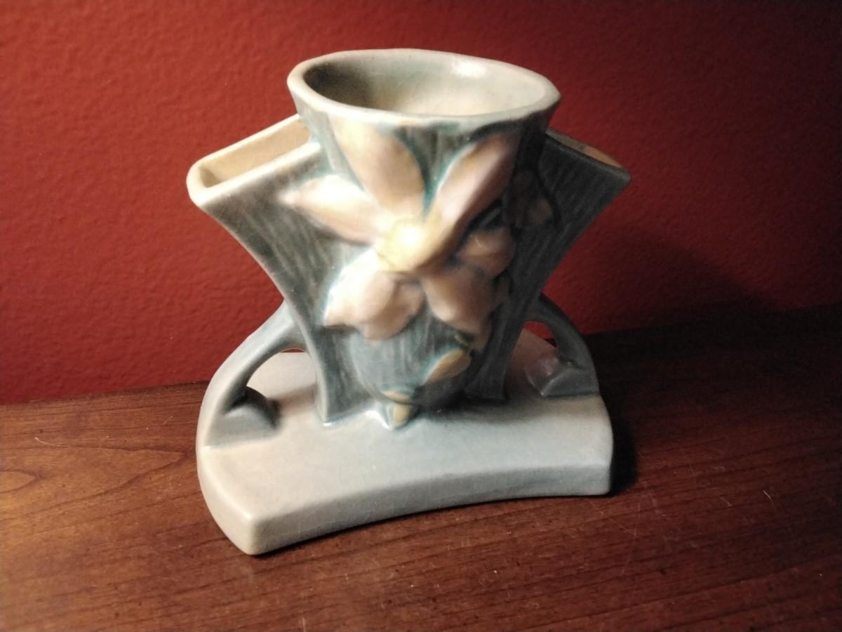 Vintage Roseville Pottery Blue Clematis Triple Vase - #192-5 Circa 1940's