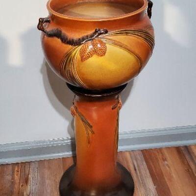 Vintage Roseville Pottery Pinecone Jardeniere Planter Pedestal marked