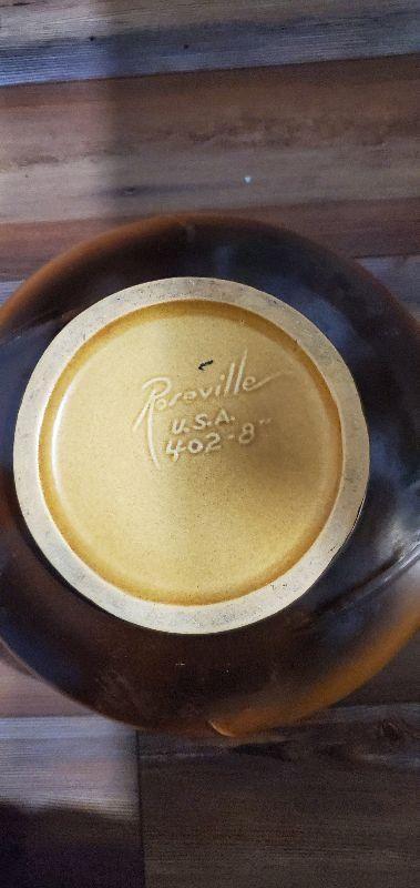 This item is a vintage Roseville Pinecone Jardeniere Planter and Pedestal - Jardeniere signed / marked 402-8 and Pedestal is also signed / marked (item #25).