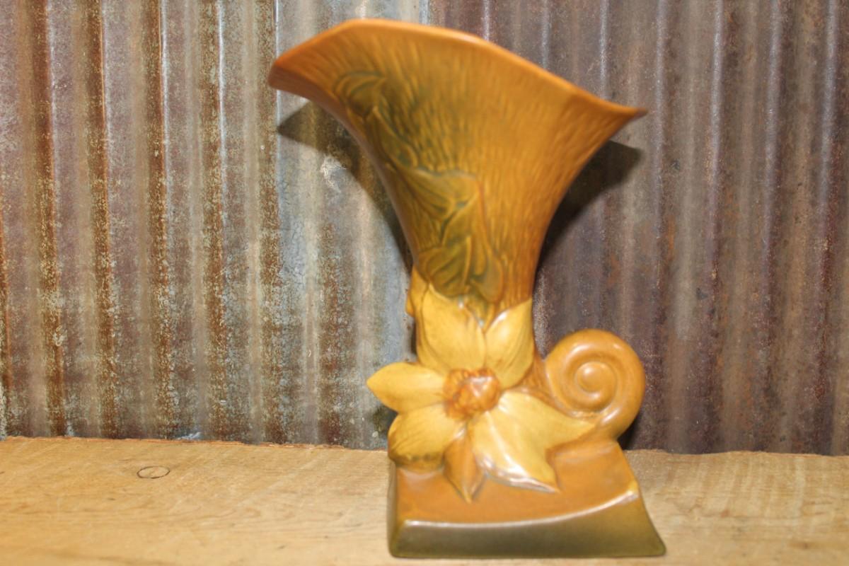 Nice Brown 9" Flowered Roseville Vase, Authentic, No Chips or Cracks in any of them Mint Condition - Winning Bid Buys All Items Shown, All Item(s) are Sold As Is - Photo's Are Part of the Description - Pickup by Appointment, or Shipping is Available (Buyer Pays)