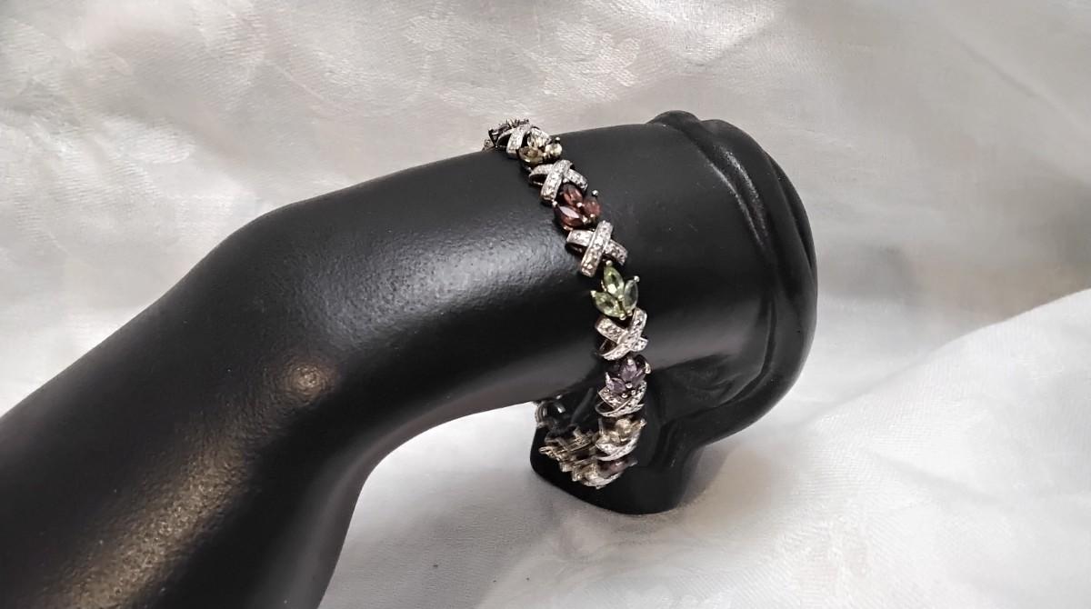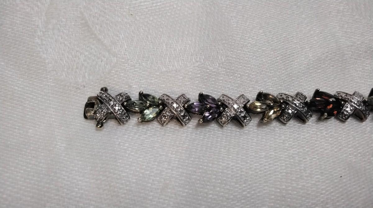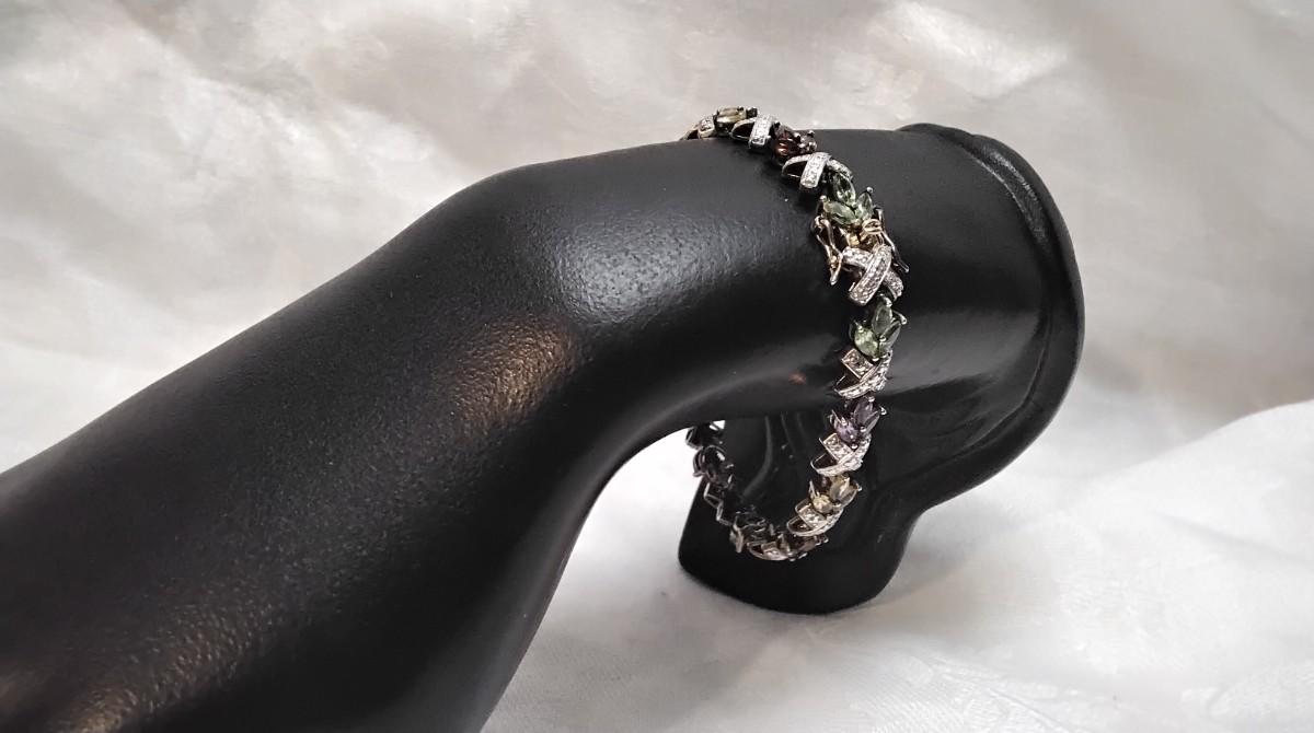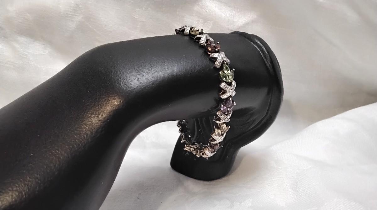 Vintage Ross Simons Diamond, Ruby, Citrine, Peridot, Amethyst, Aquamarine Gold Vermeil 7" Bracelet