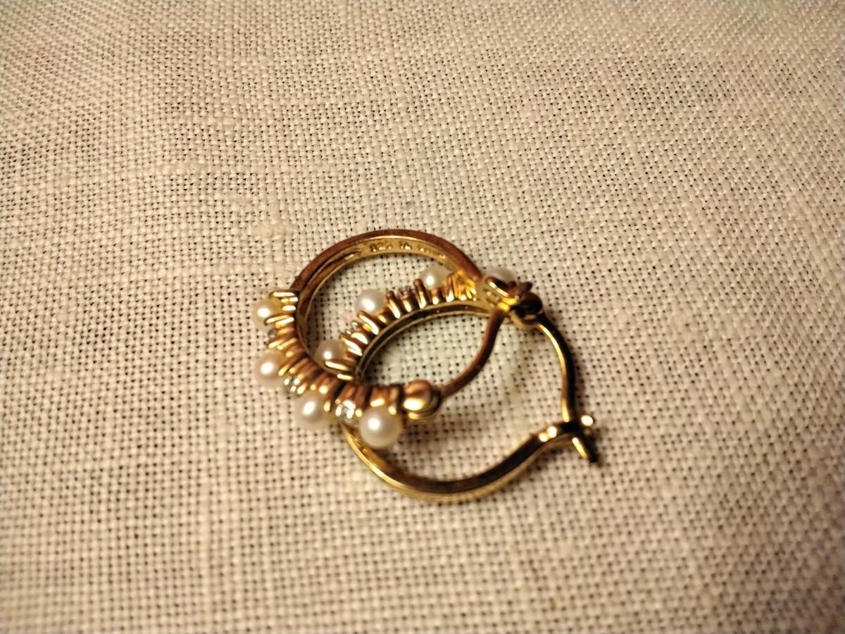 VINTAGE ROSS SIMONS GILTED STERLING PEARL DIAMOND HOOP PIERCED EARRINGS