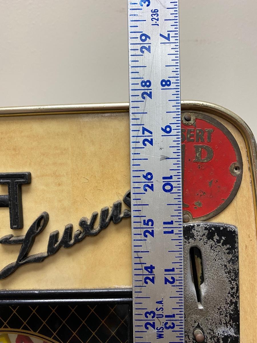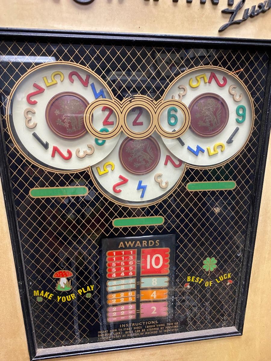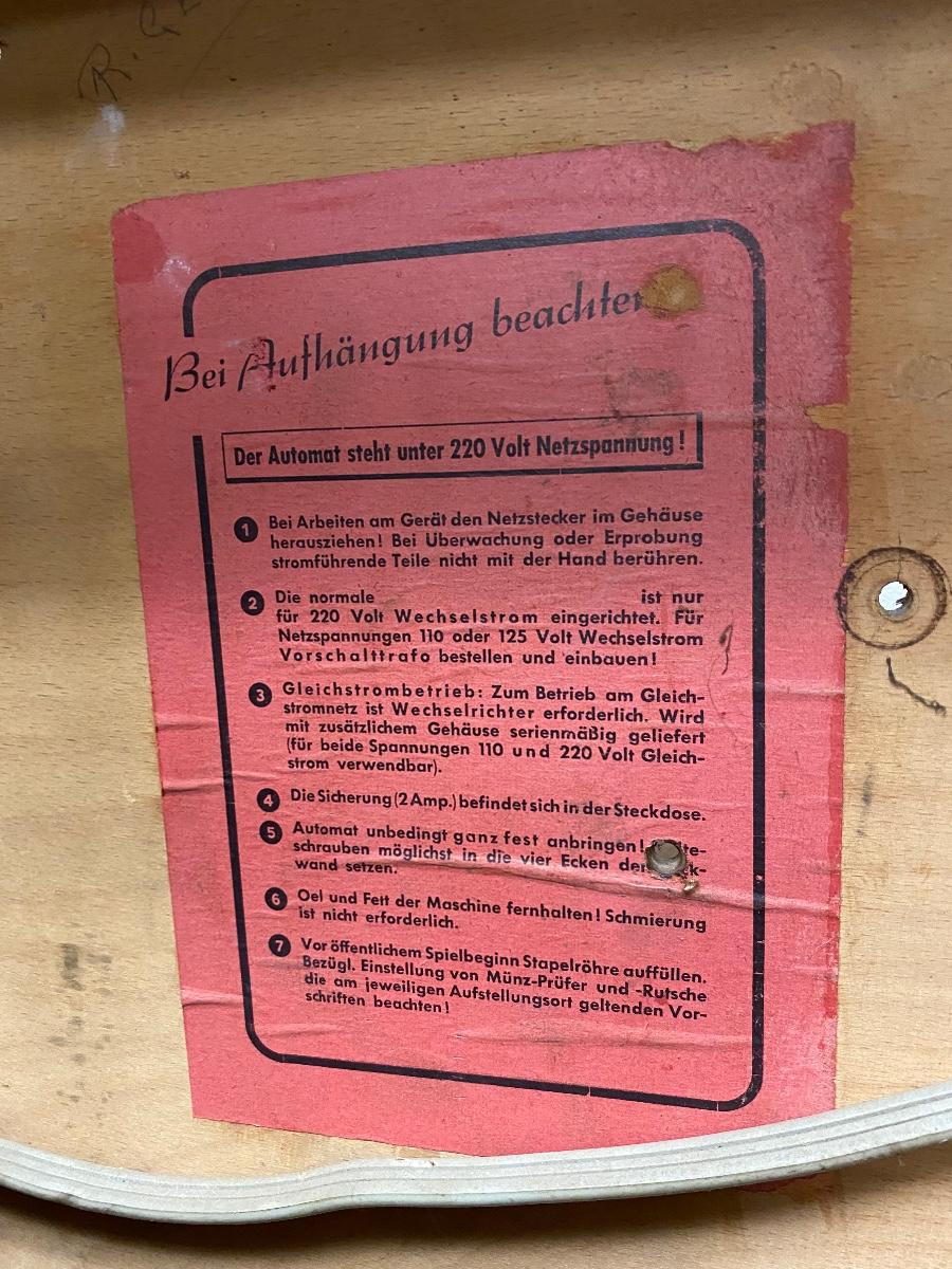 Vintage Rotamint Luxus Wall Mounted German Slot Machine, there is no significant damage to the machine and is in overall good vintage condition. Check pictures for more details and for sizing. Has been tested and it does not power on.