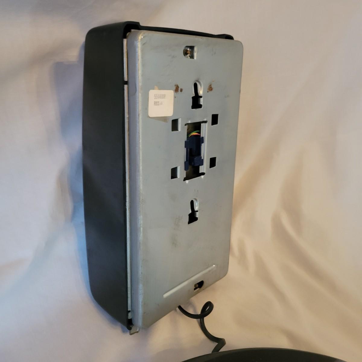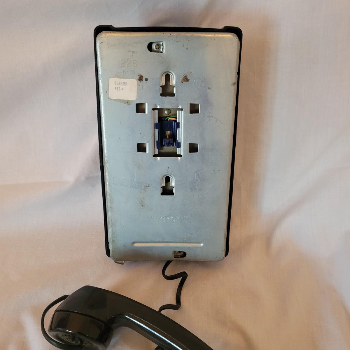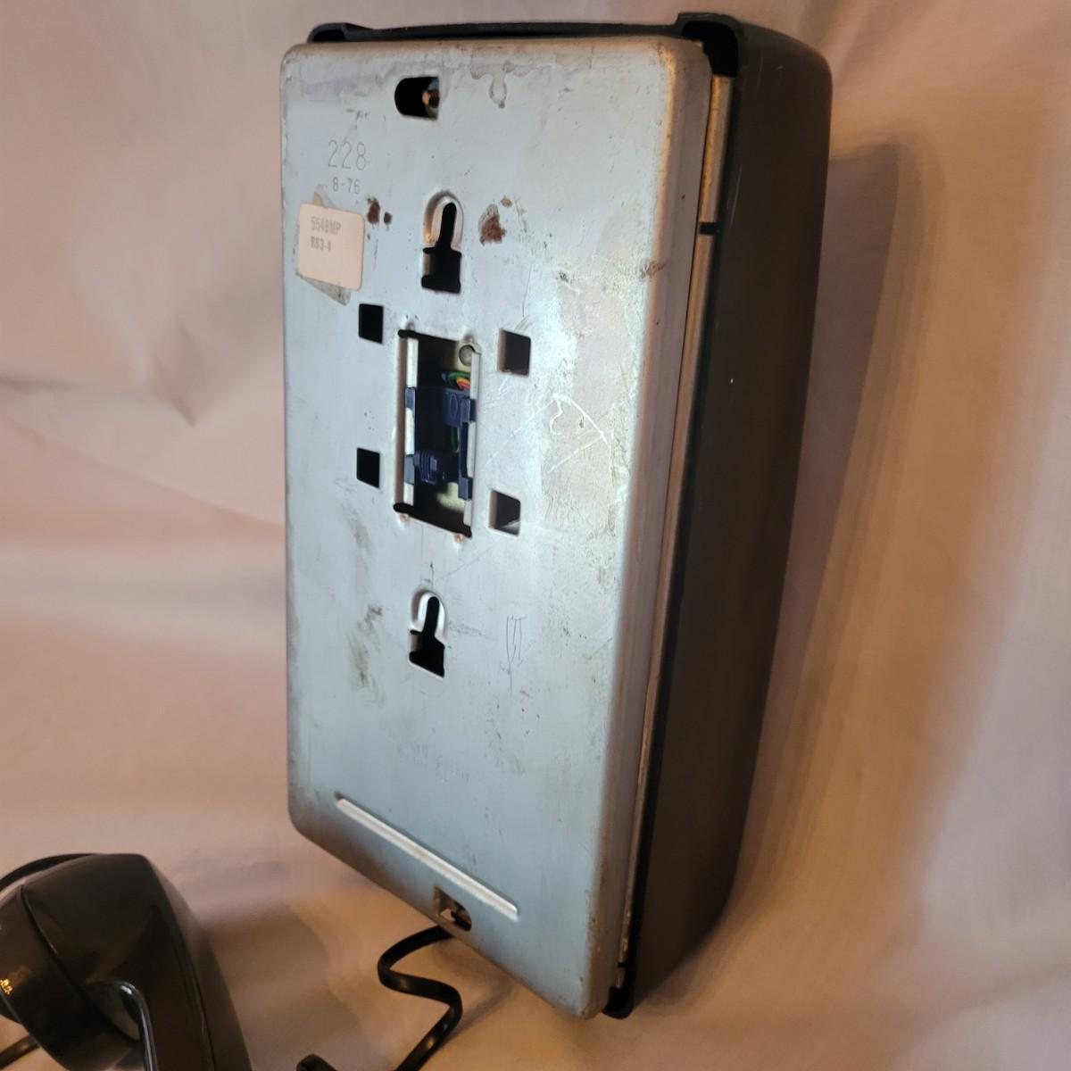 A vintage rotary dial phone. Item could not be plugged in to test. Measures approximately 5.5" x 5.5" x 9.5"H. Shipping available