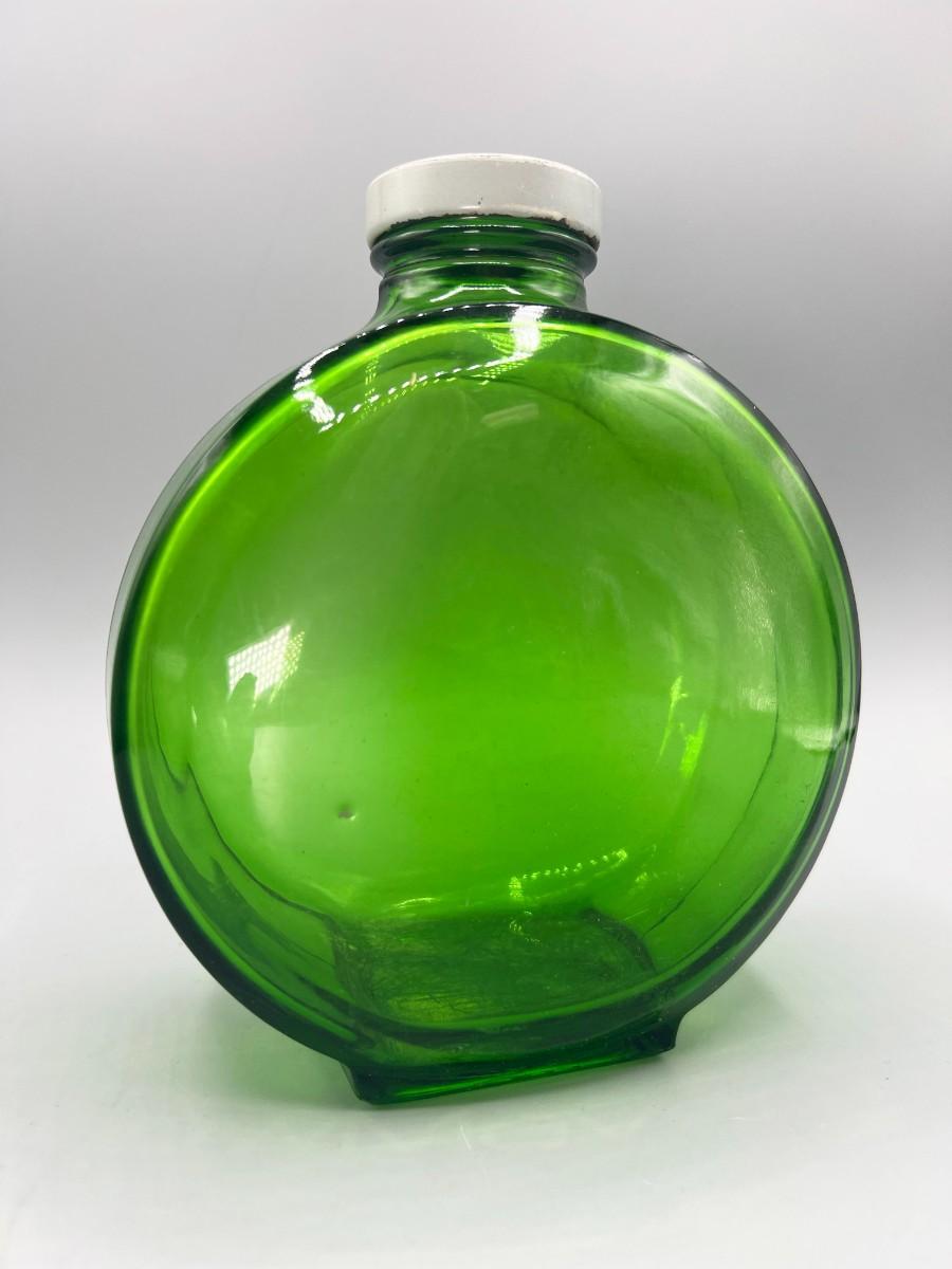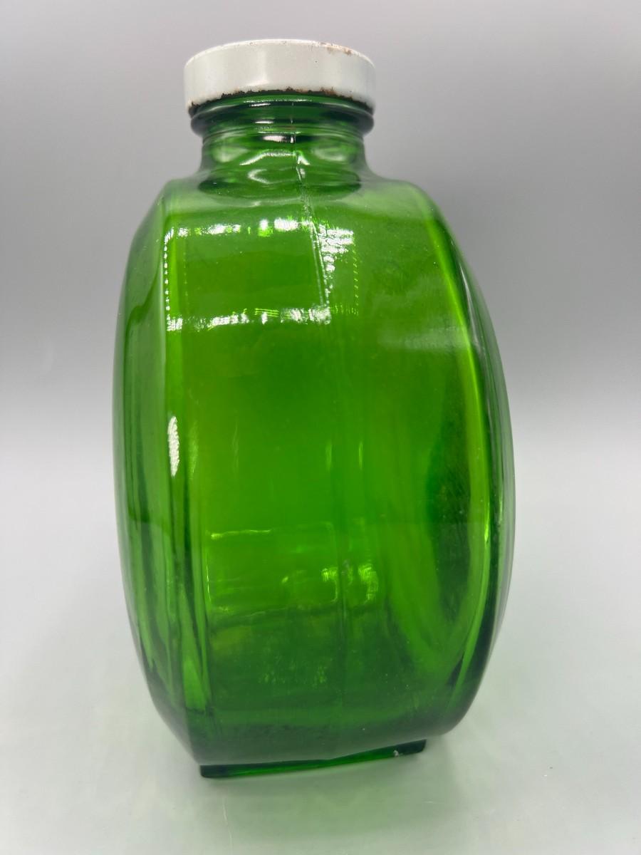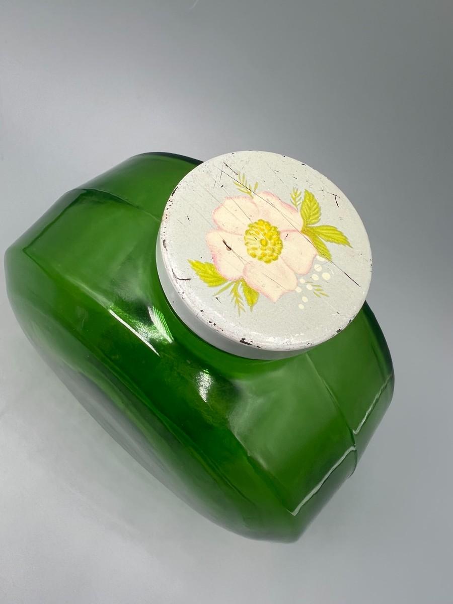 Vintage Round Green Glass Metal Flower Screw On Cap