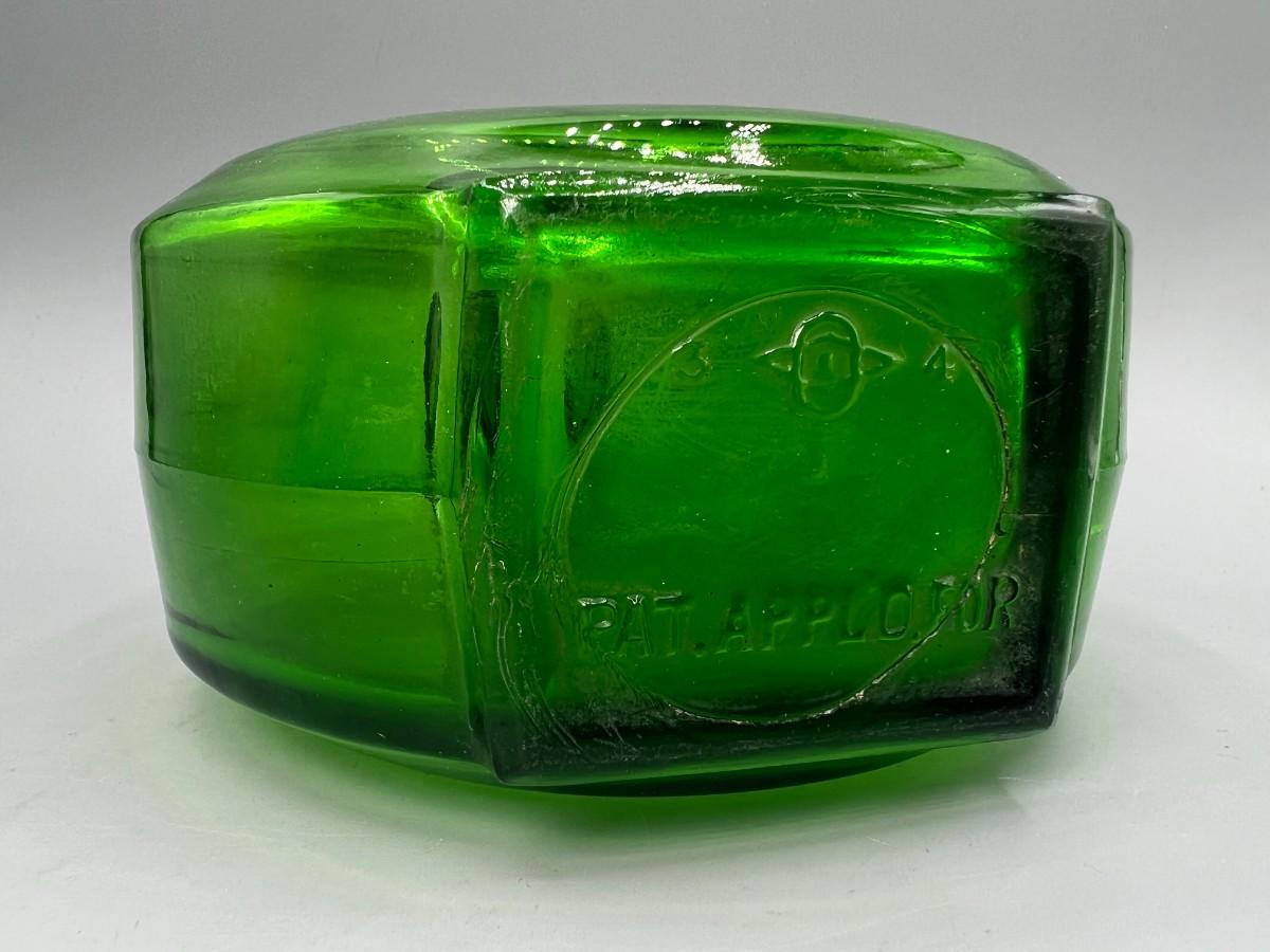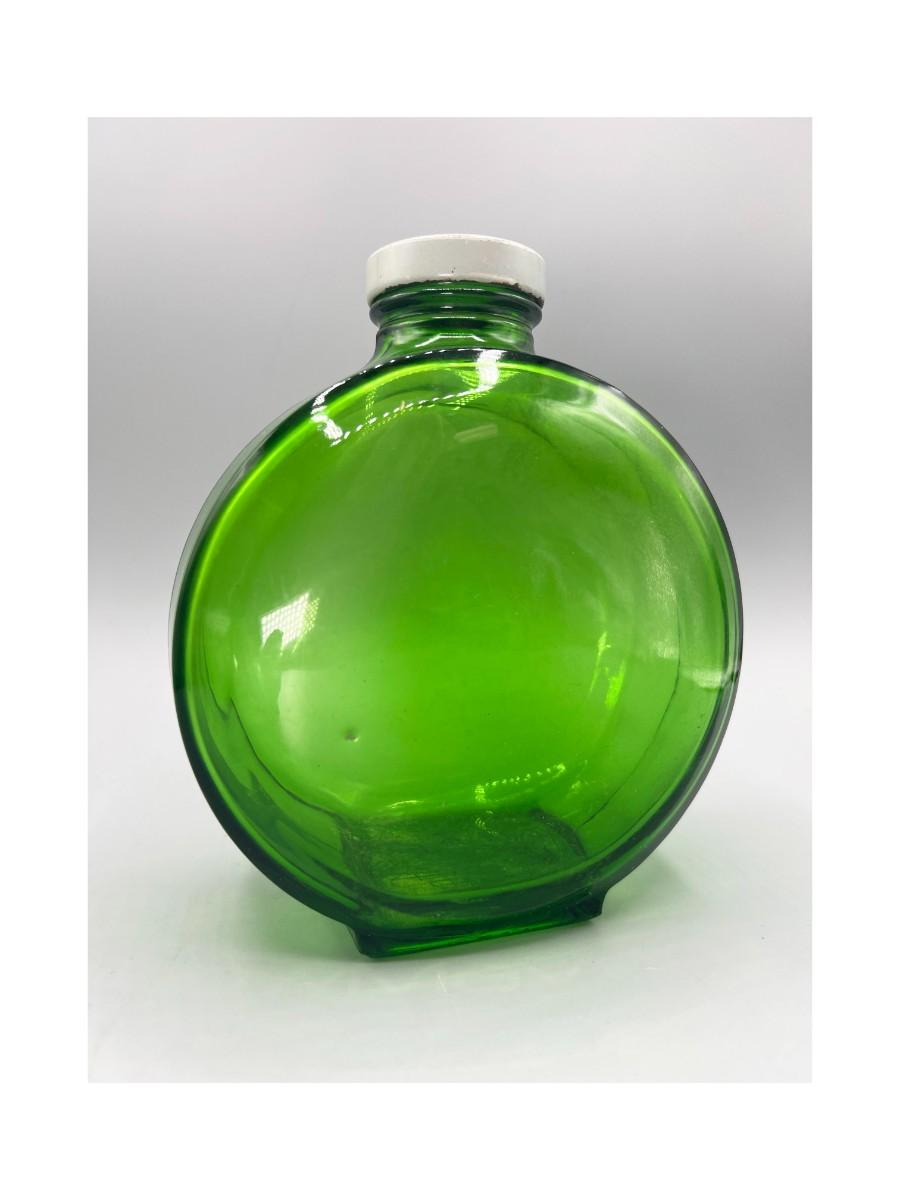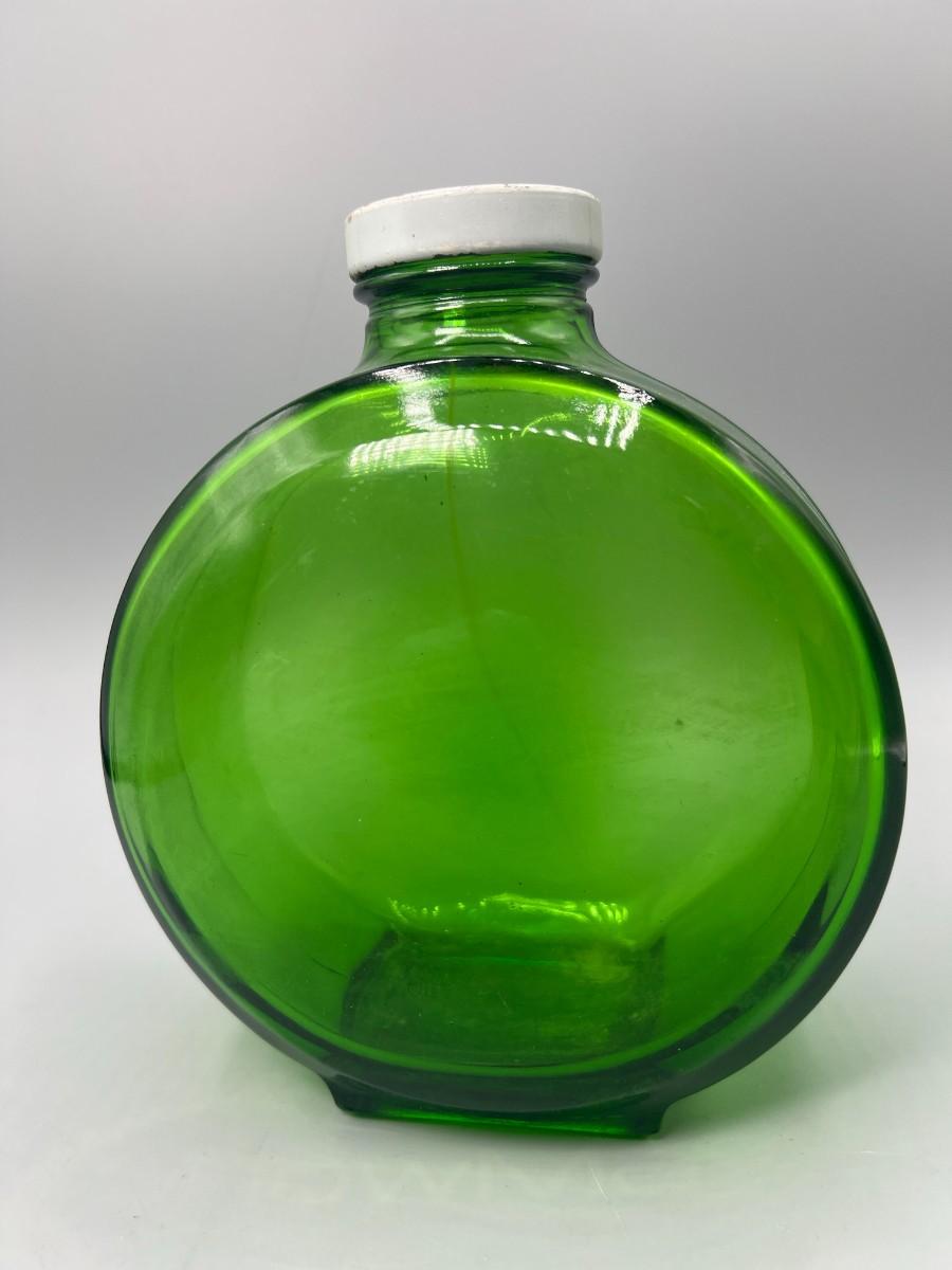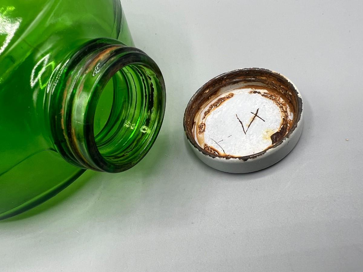 Vintage Round Green Glass Metal Flower Screw On Cap