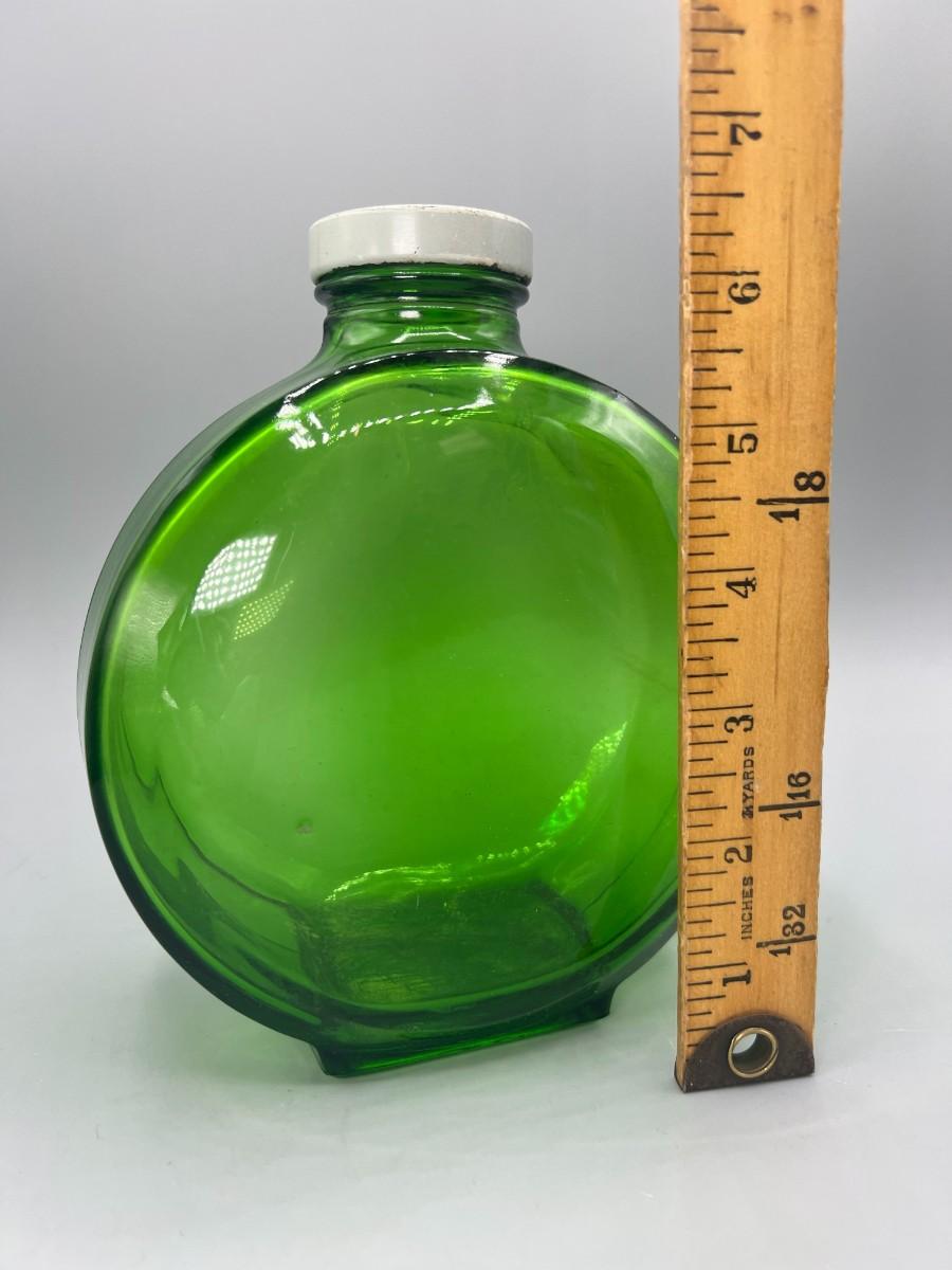 Vintage Round Green Glass Metal Flower Screw On Cap, there is no signifncant cracks or chips to the glass and is in good vintage condition. Check pictures for more details and for sizing.