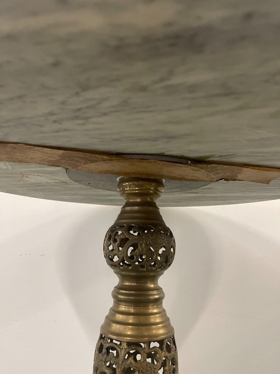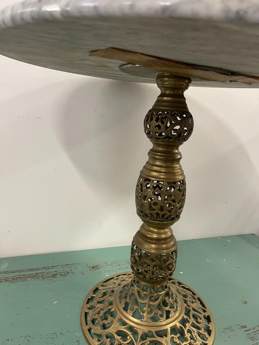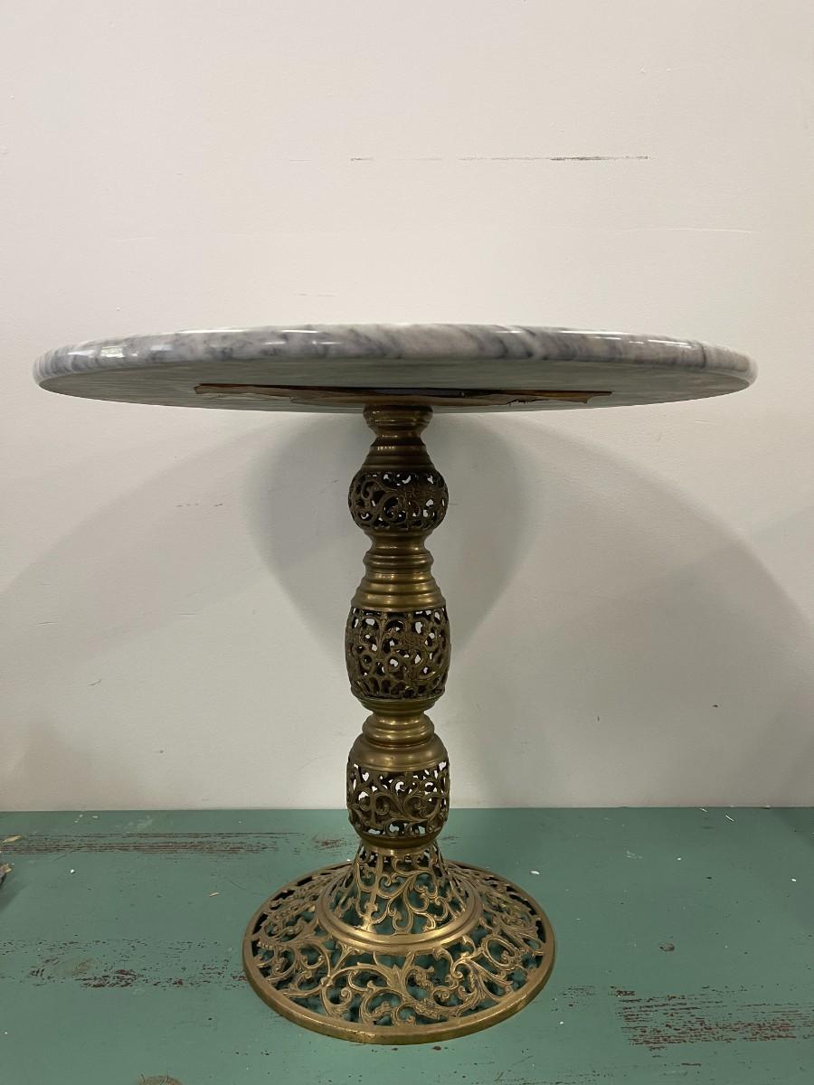 Vintage Round Marble Accent Table with Pierced Brass Base