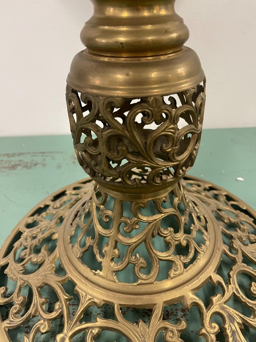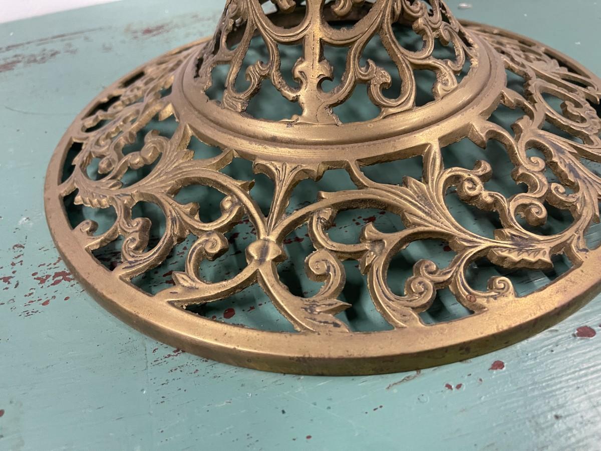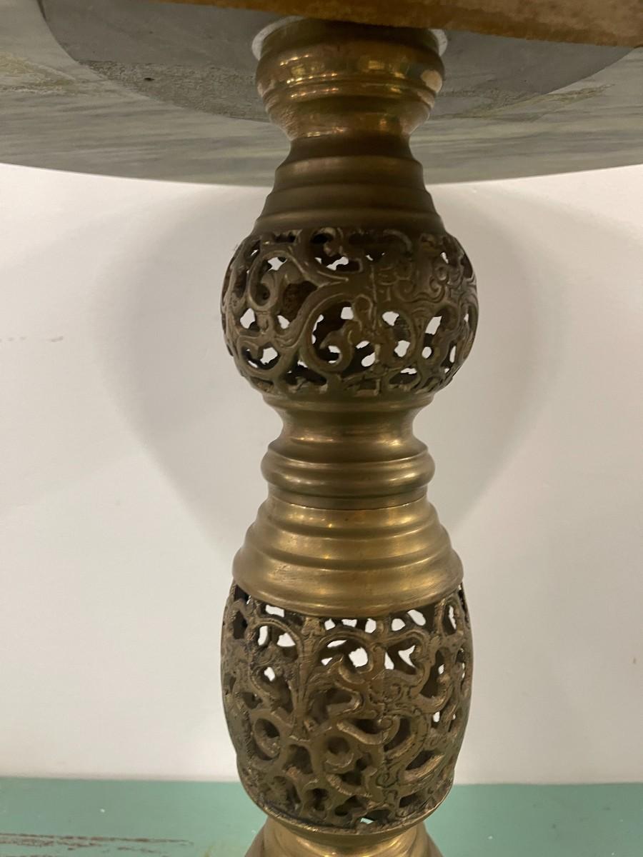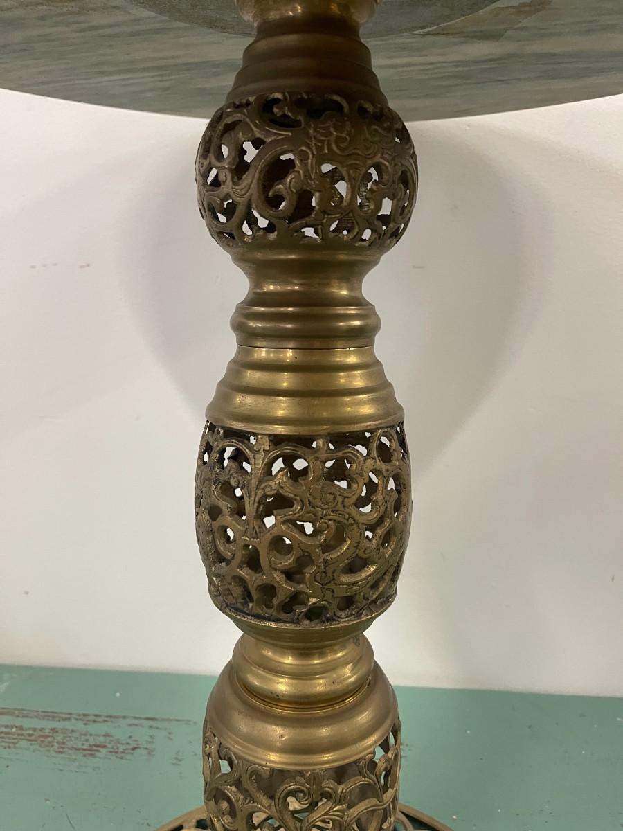 Vintage Round Marble Accent Table with Pierced Brass Base