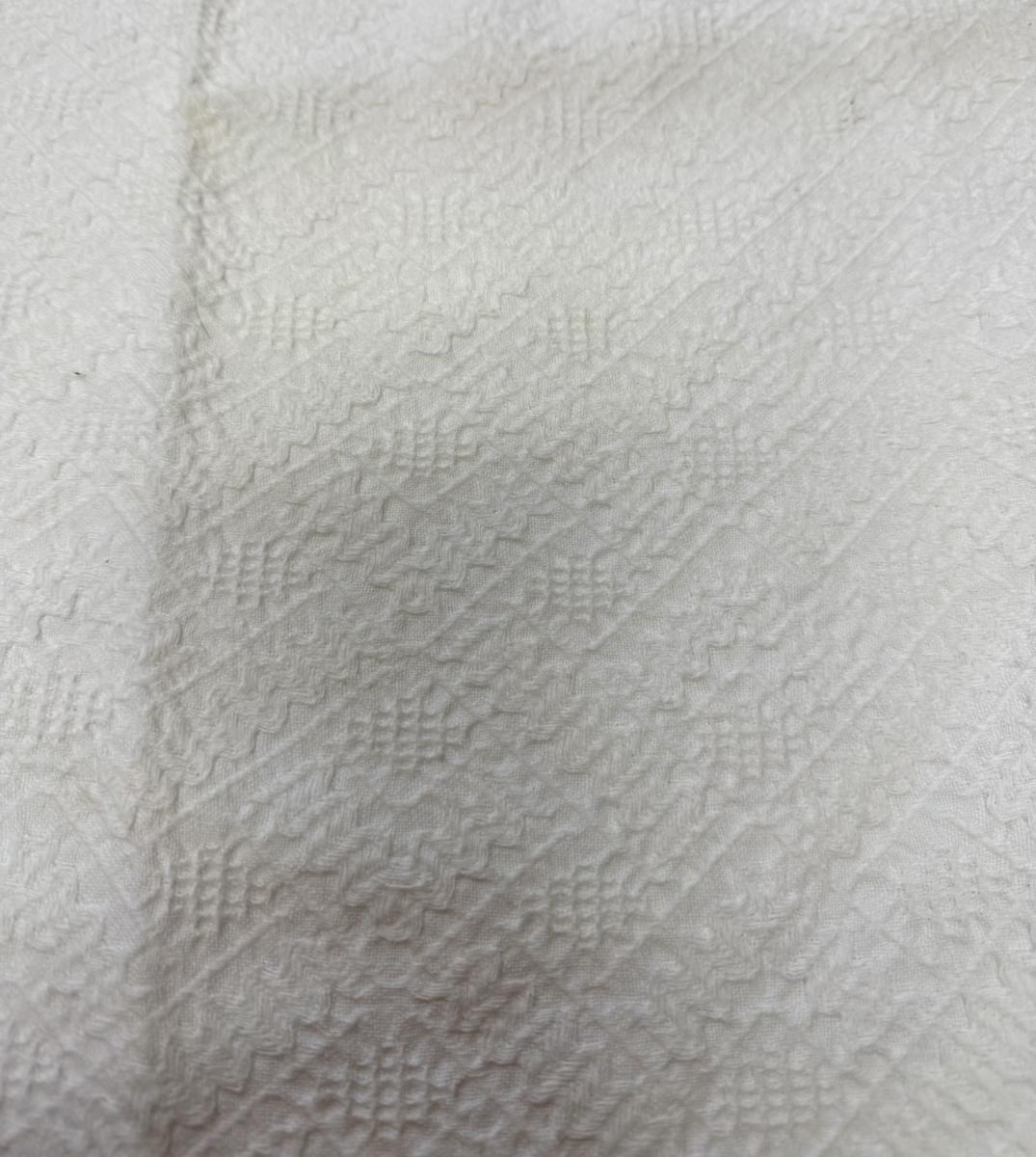 Made in Germany. 60” diameter tablecloth. Needs cleaning, small spot and some dirt/dust on a fold. See photos for details..