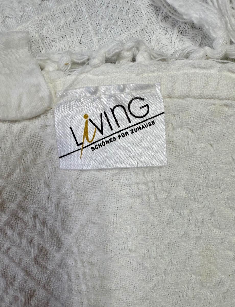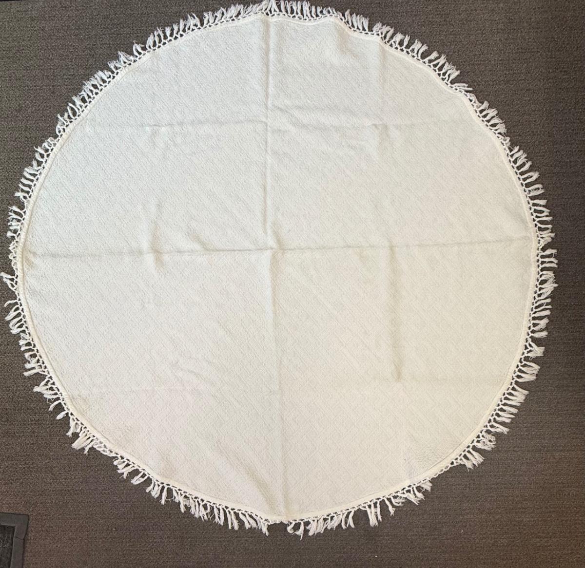 Vintage Round White Cotton Tablecloth with Fringe