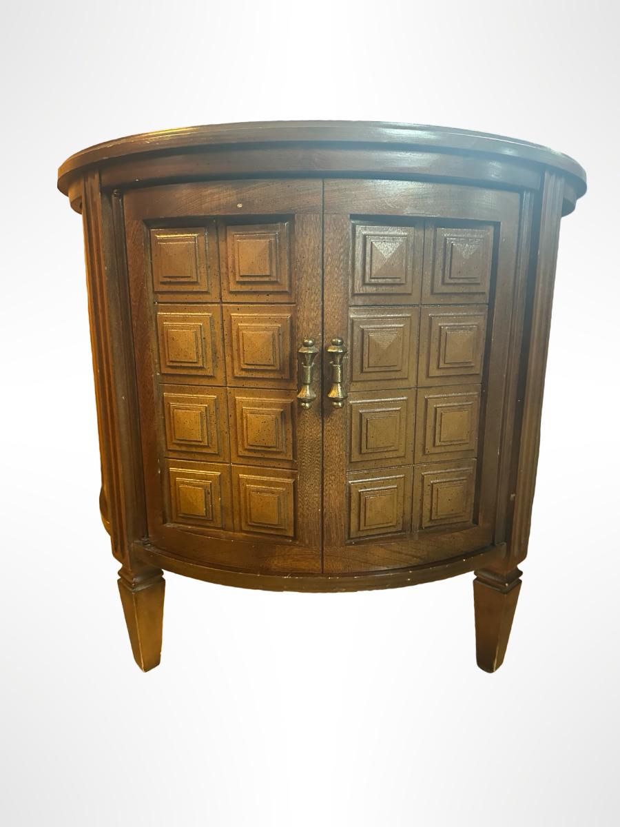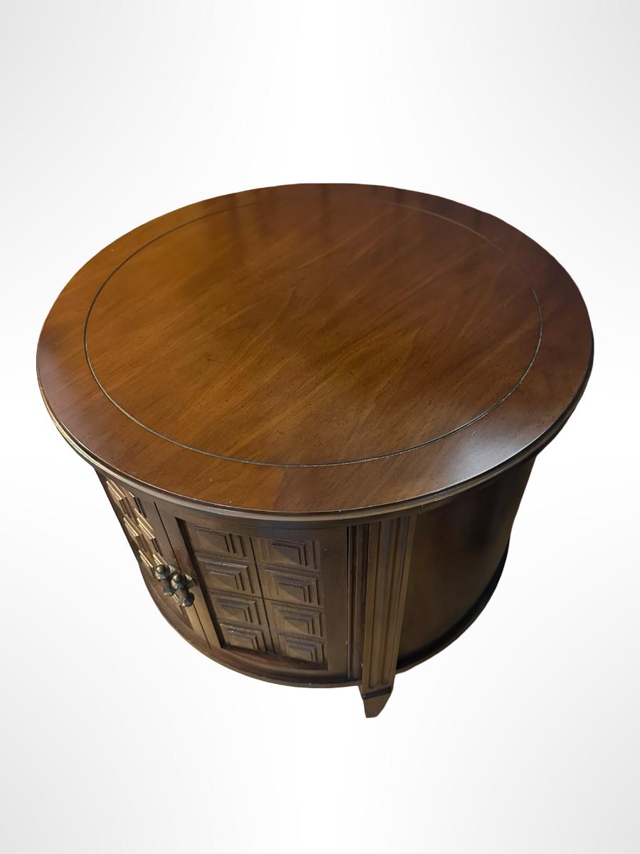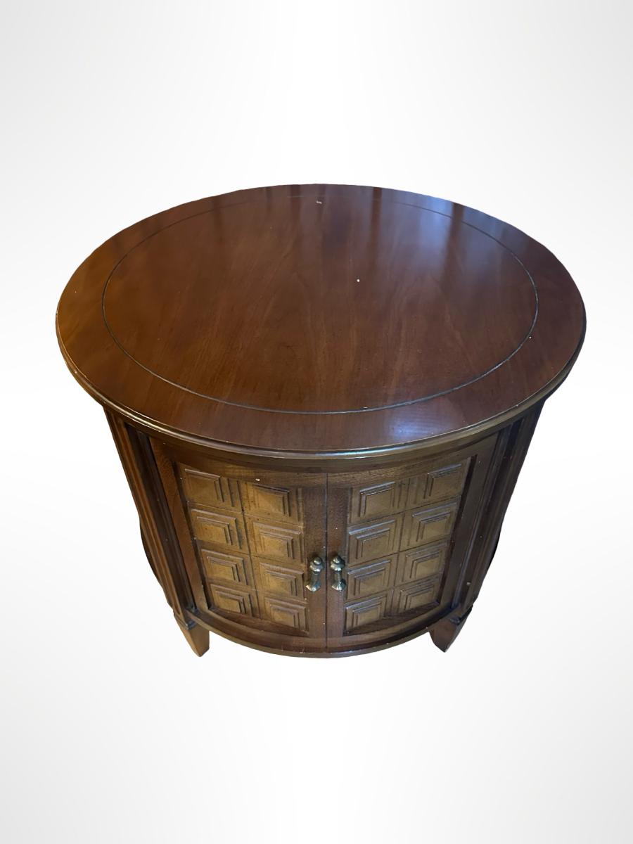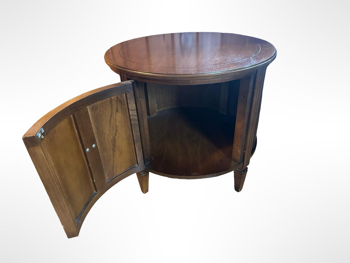 Vintage Round Wood Side Table with Storage Cabinet.