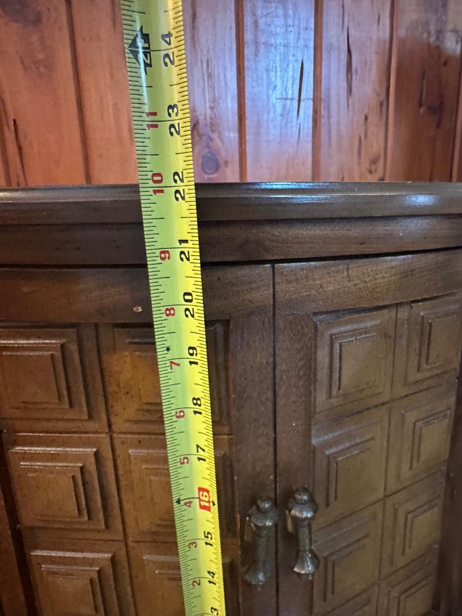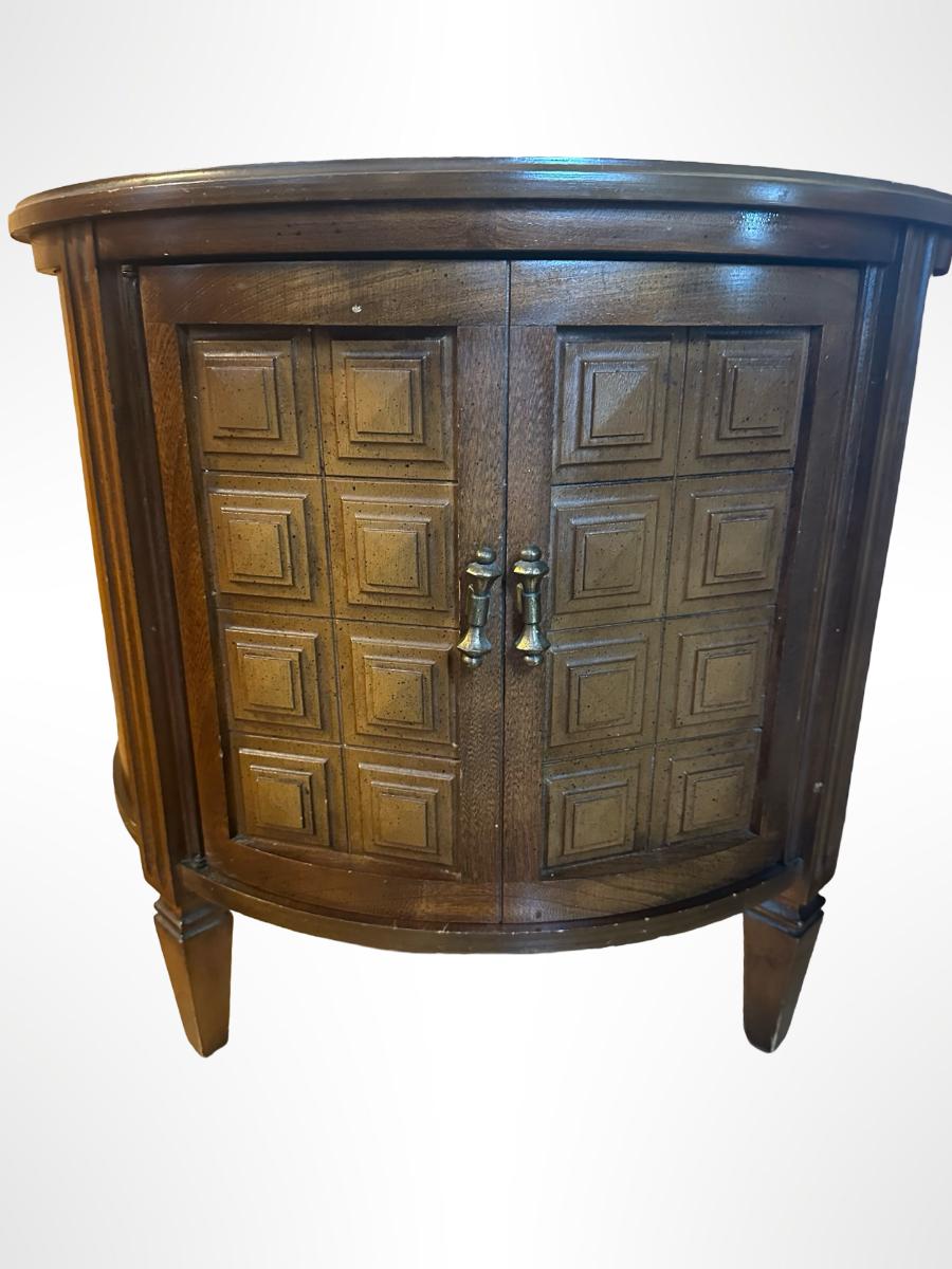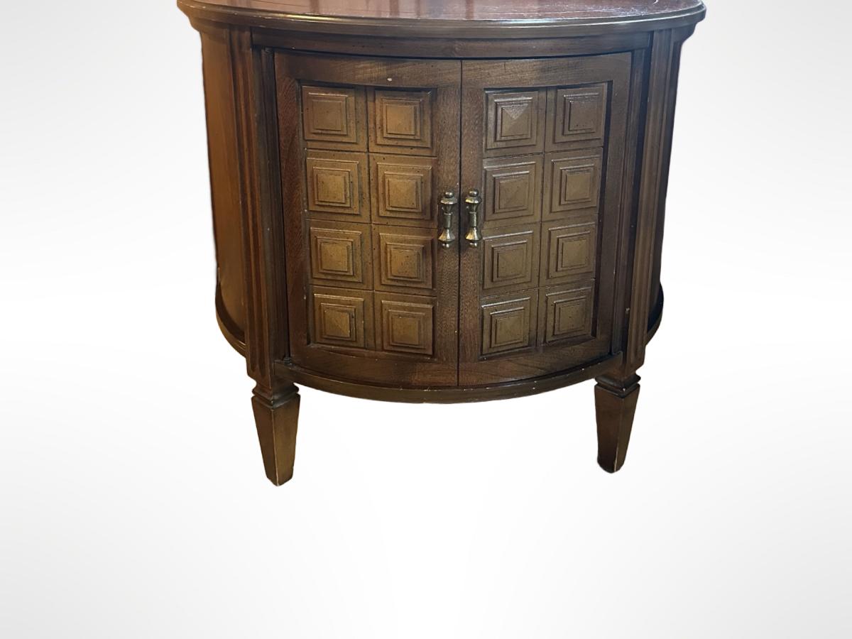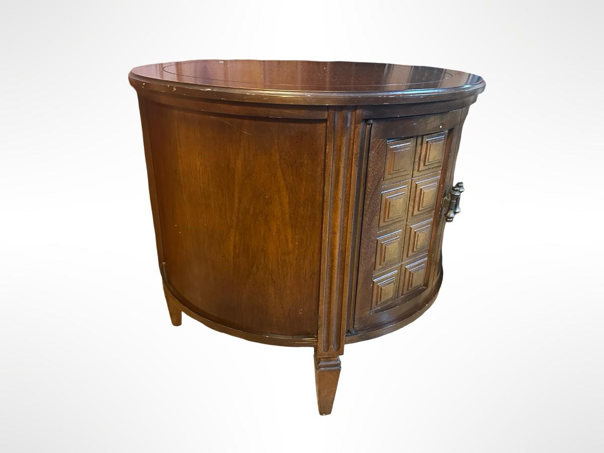 Vintage Round Wood Side Table with Storage Cabinet.