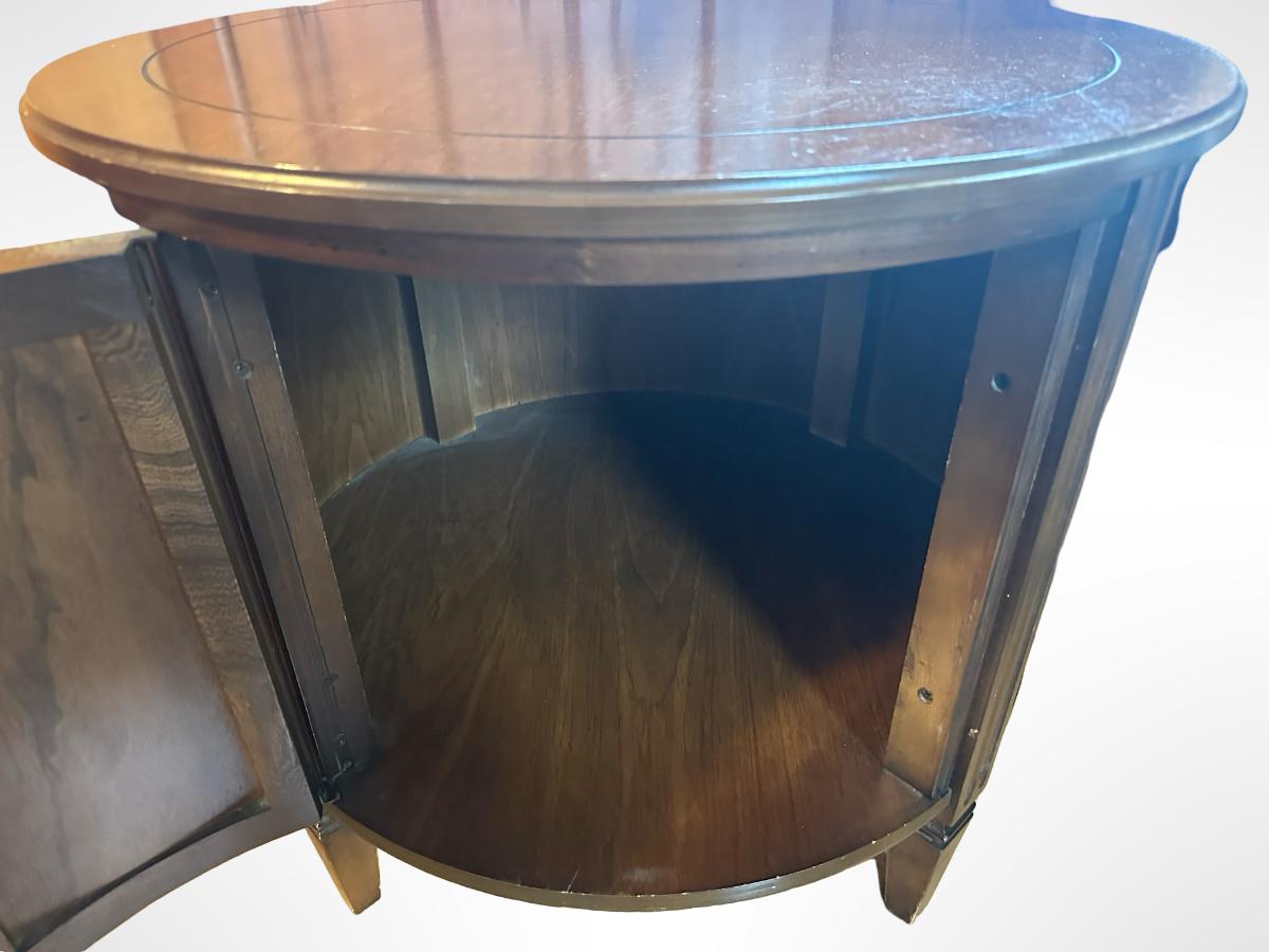Vintage Round Wood Side Table with Storage Cabinet