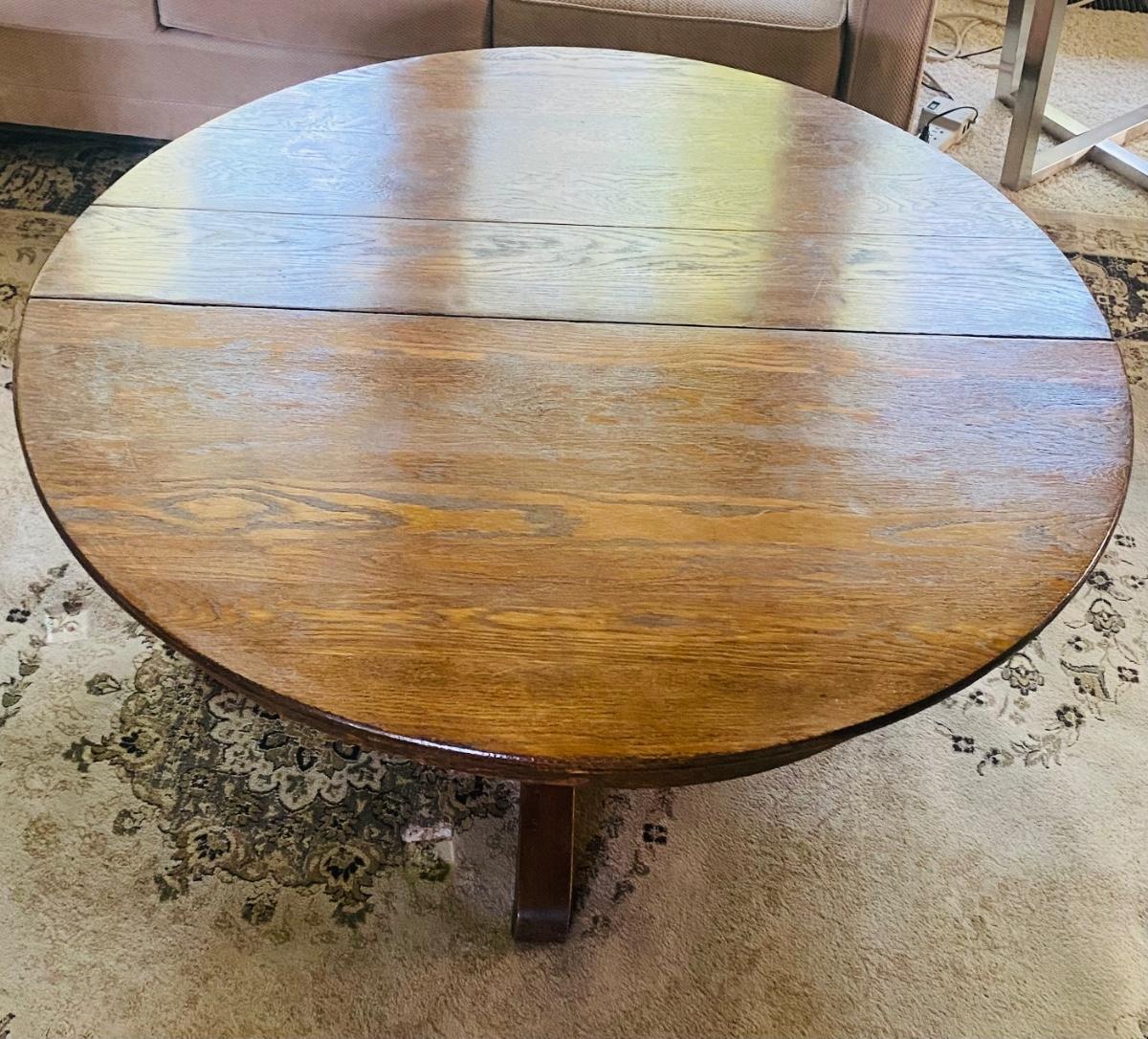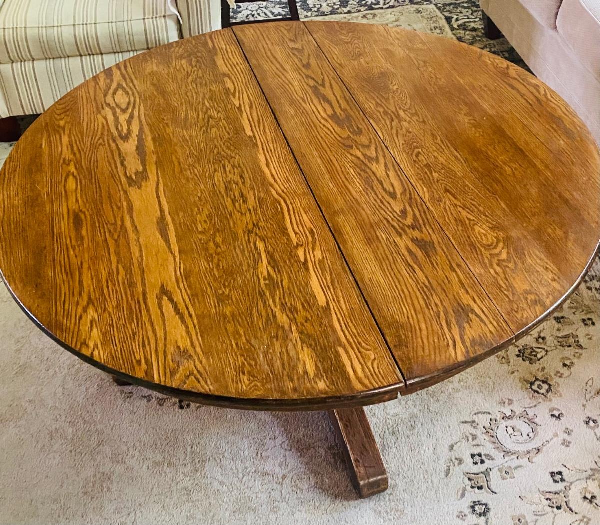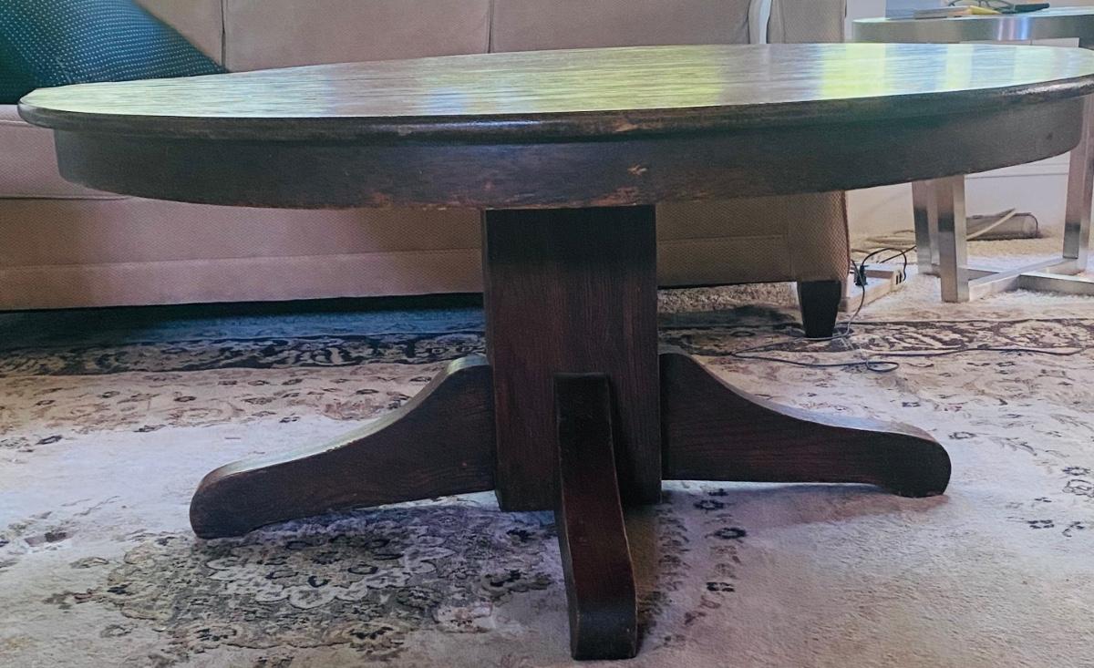 Vintage Round Wooden Coffee Table – Dark Finish with Sturdy Pedestal Base