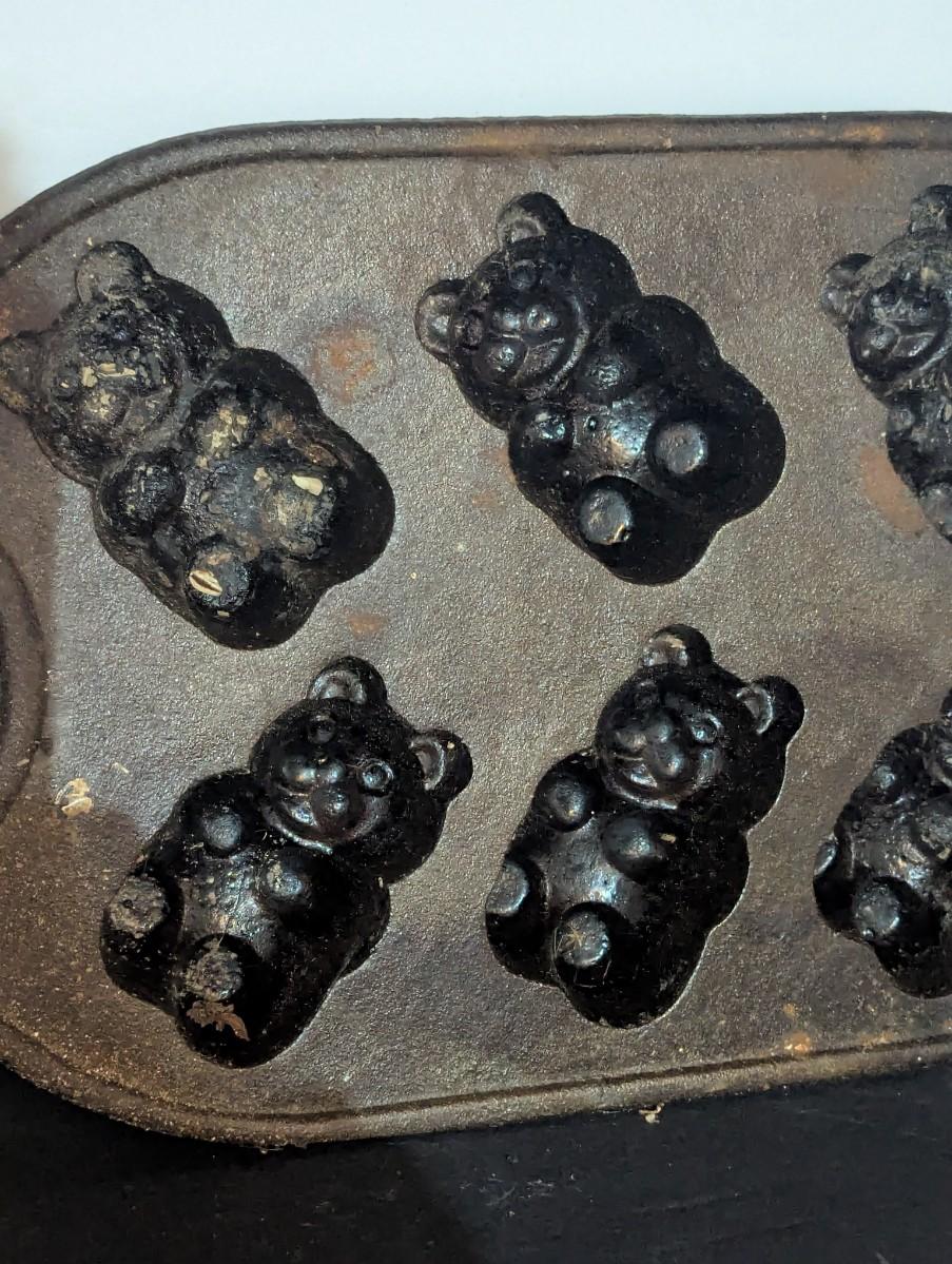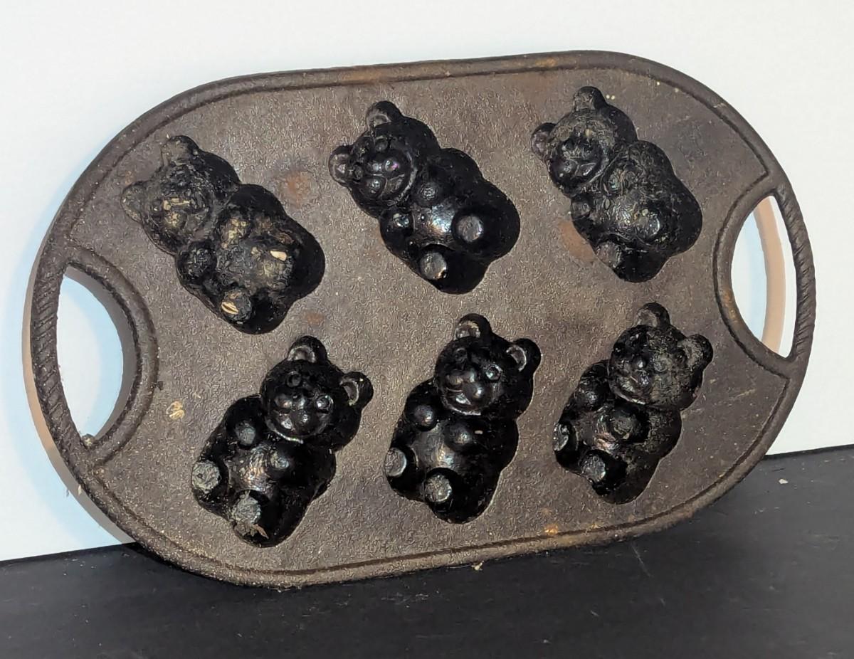Vintage ROWOCO Cast Iron Teddy Bear Muffin Pan