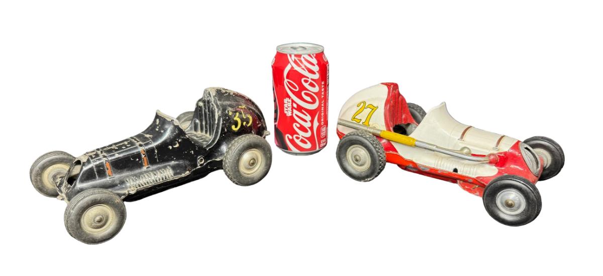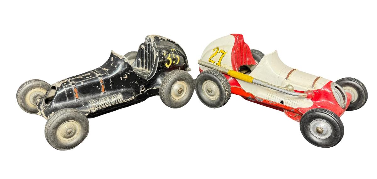 Includes the #27 and #35 cars. These cars have use-related wear, including broken or missing parts. The cars may or may not be repainted. Measurement: 8”L (approximate, each). Pre-auction estimate: $250-$450. [JL]