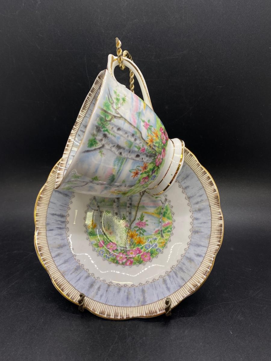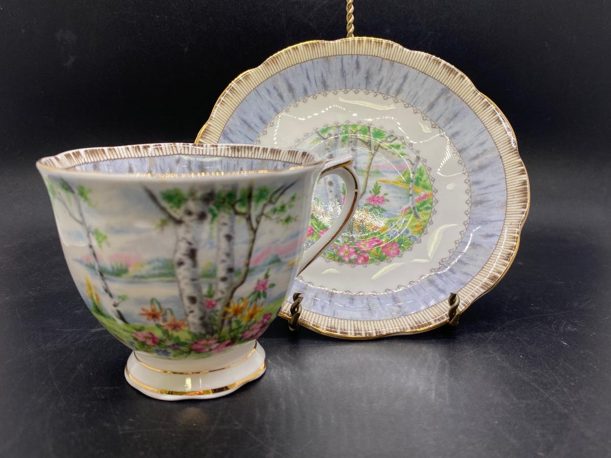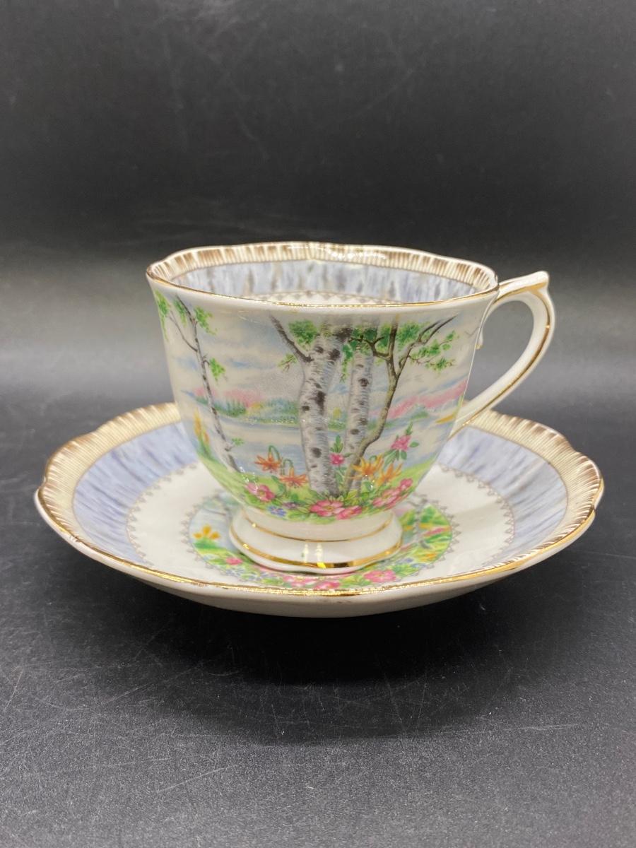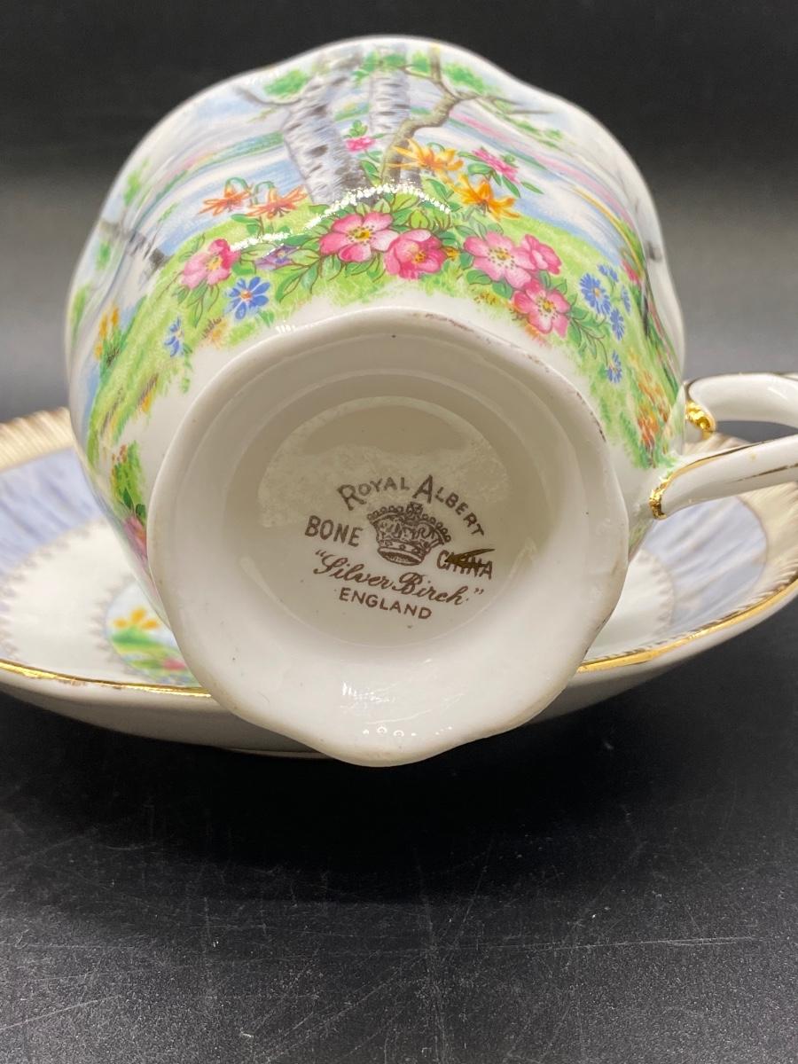 Vintage Royal Albert Silver Birch Bone Silver Birch England Tea & Saucer, there is no significant damage to the pieces and is in good vintage condition. Check pictures for more details and for sizing.