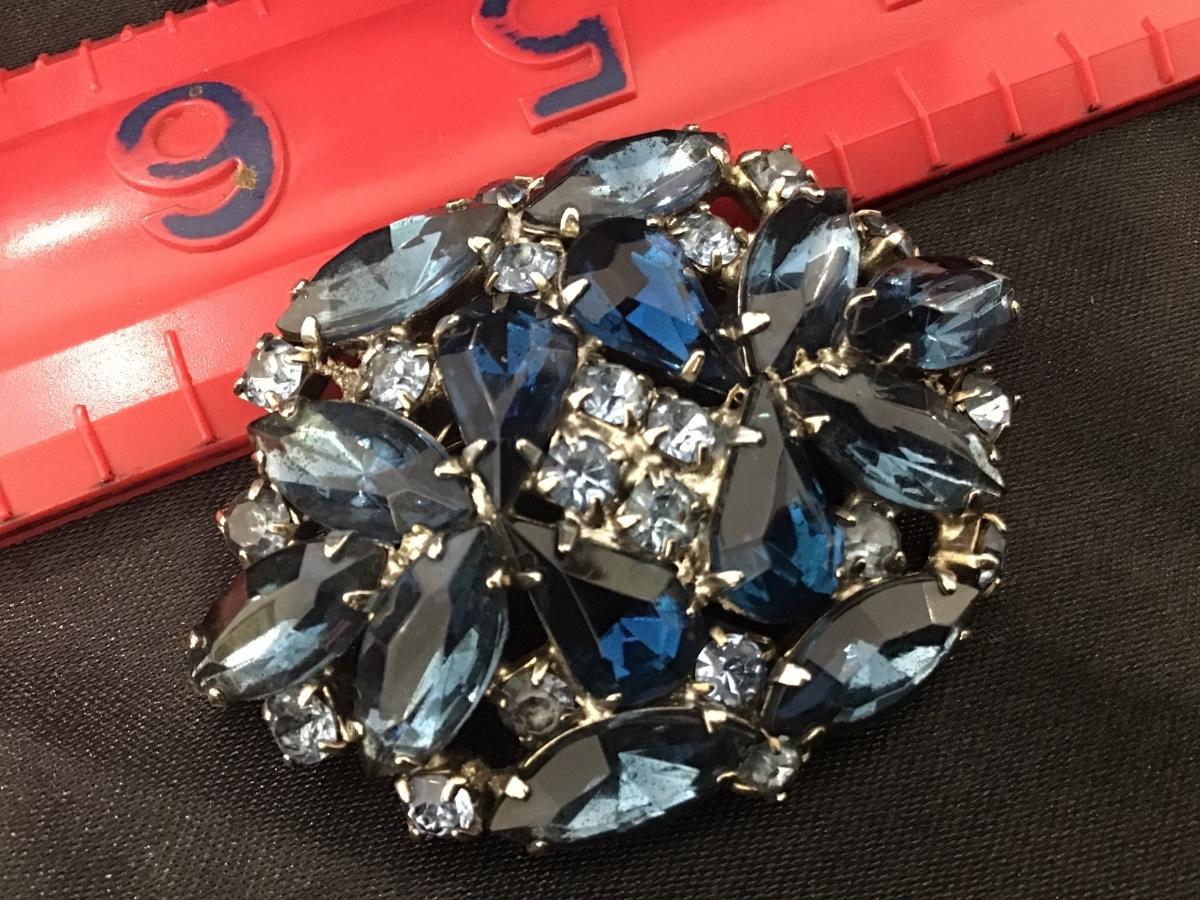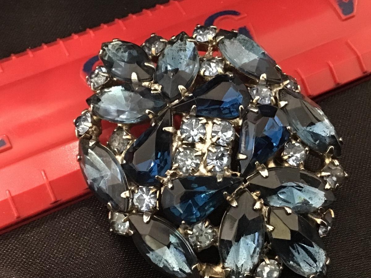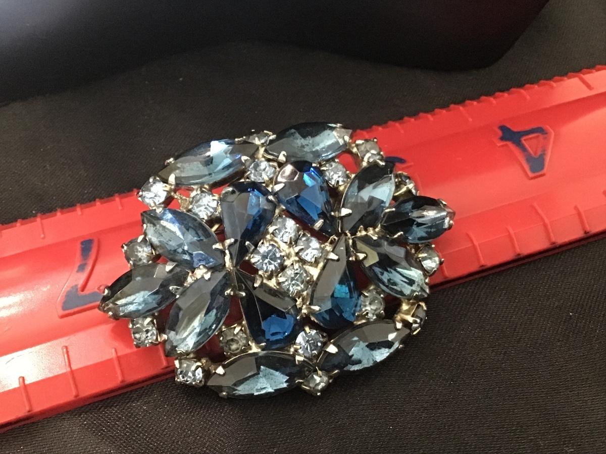 Vintage Royal Blue and Blue Aurora Borealis Rhinestone Brooch Gorgeous