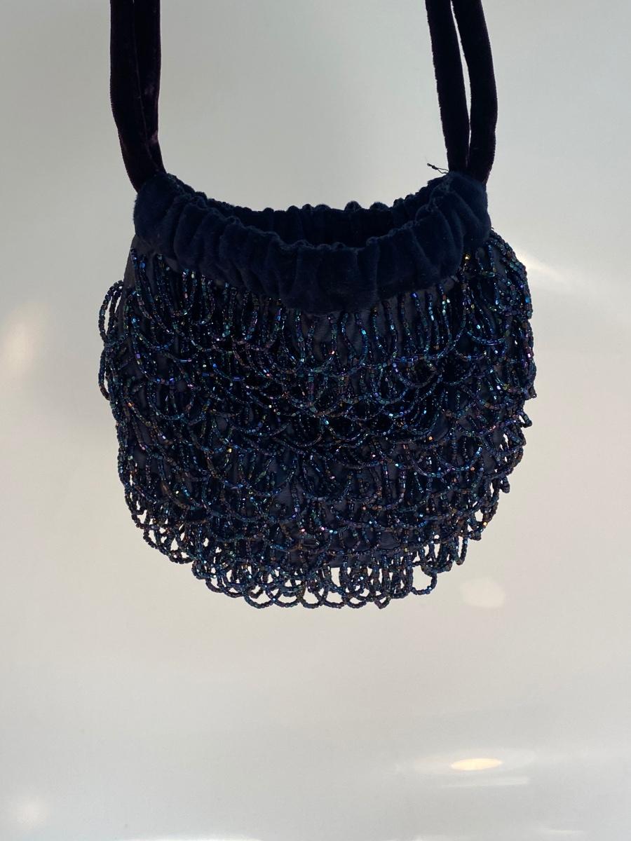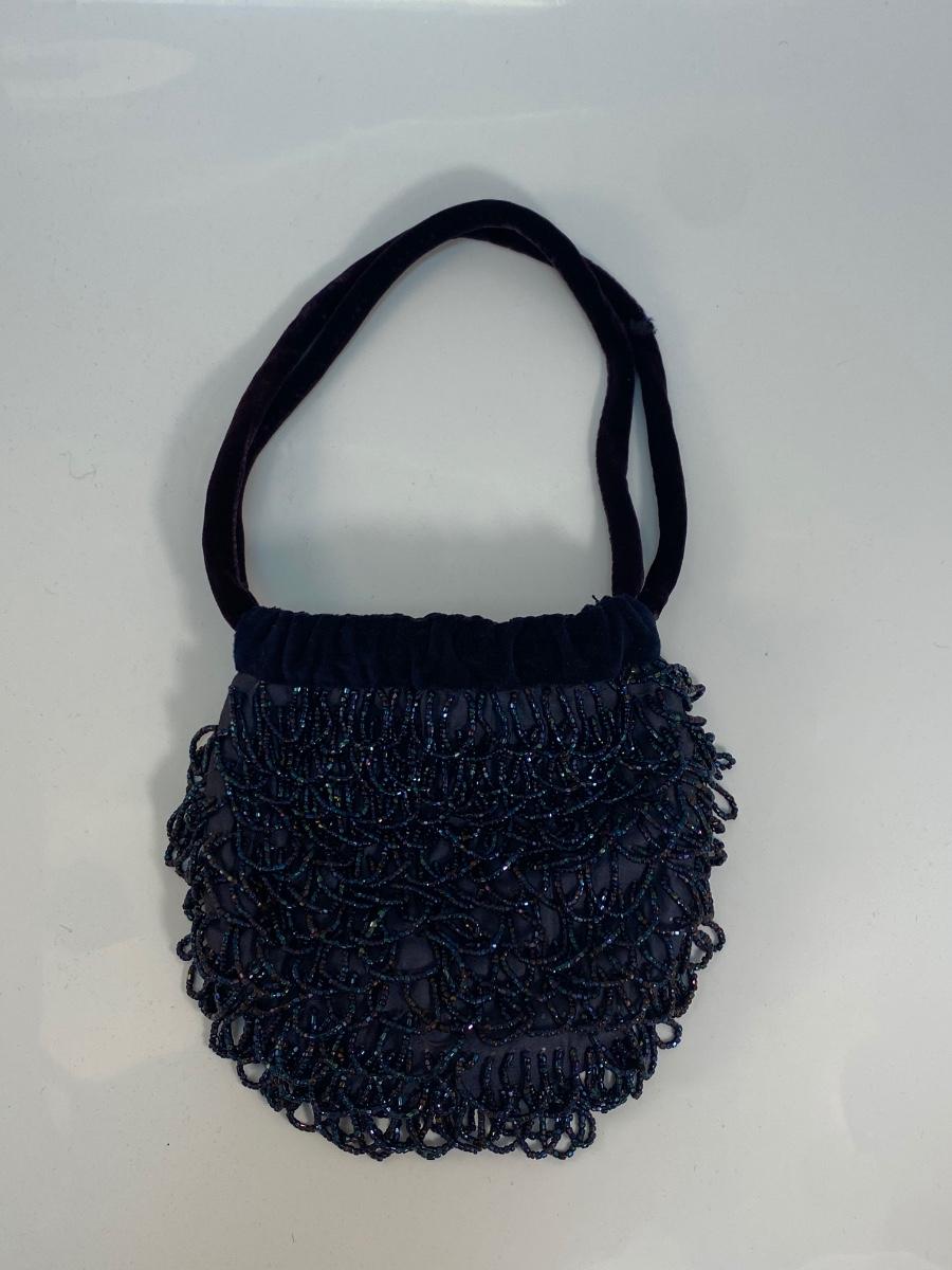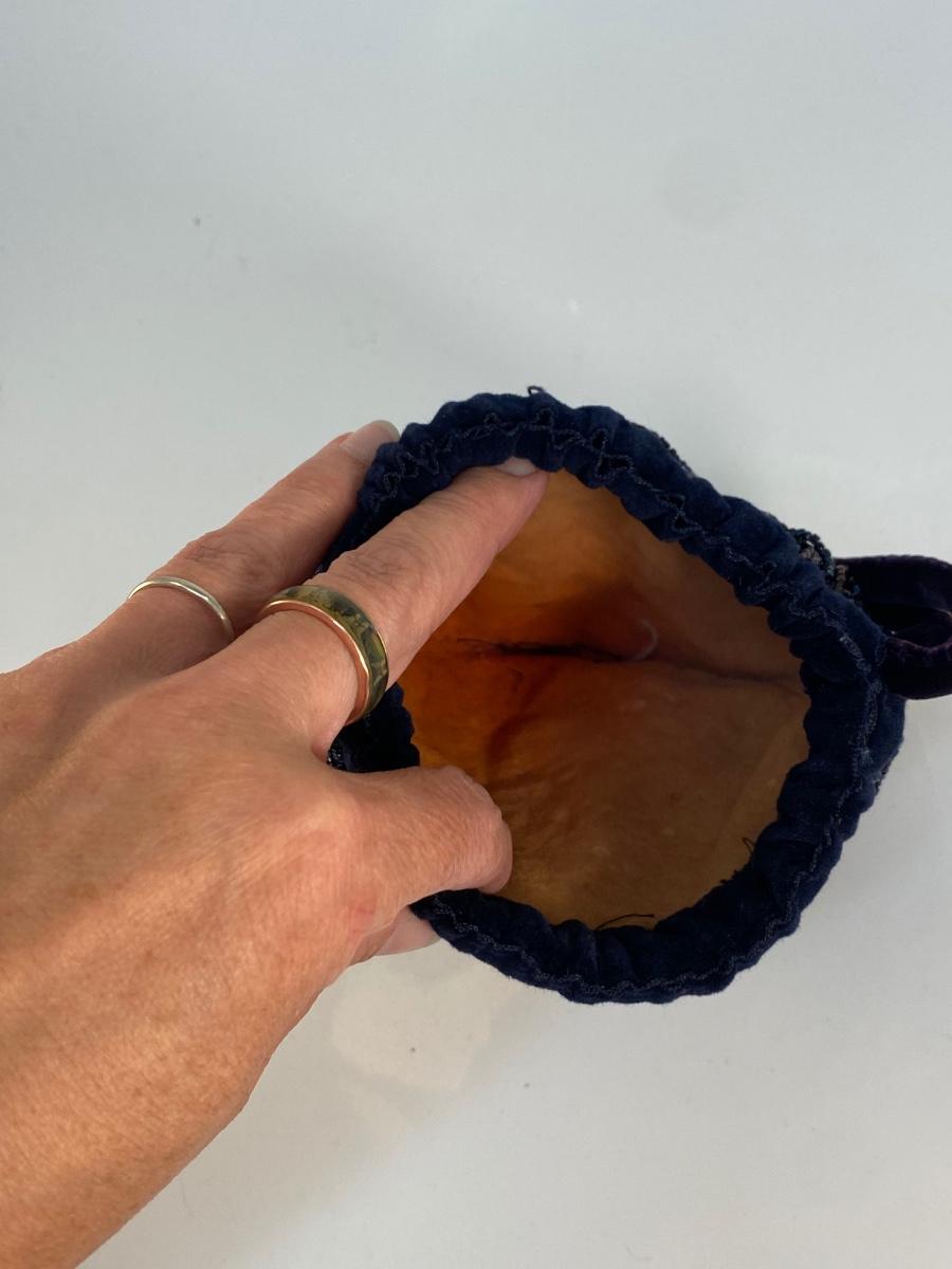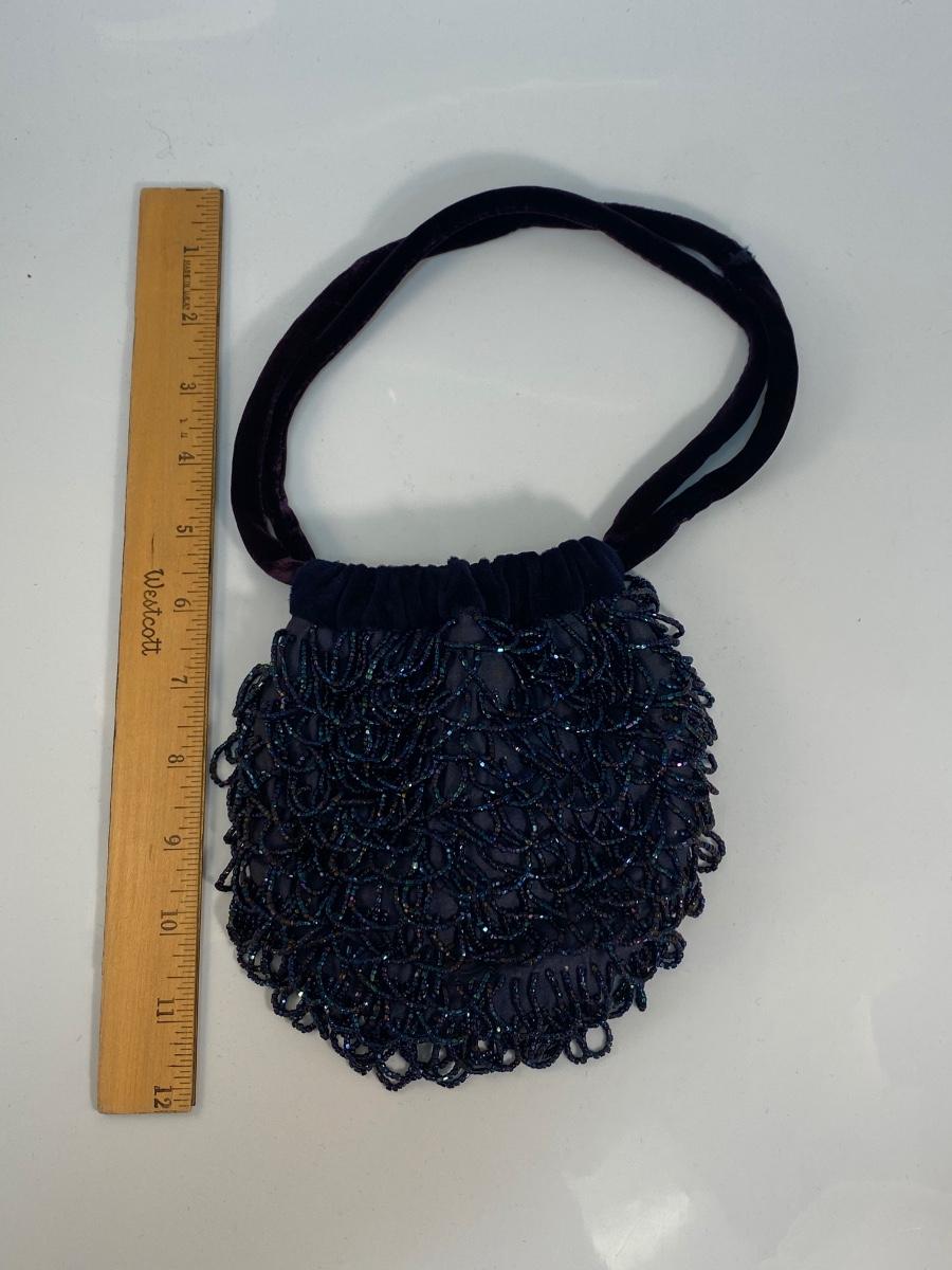 Vintage Royal Blue Beaded Fringe Velvet Trim Flapper Purse Handbag. In good condition. Drawstring style closure is a bit hard to sinch. Small size..