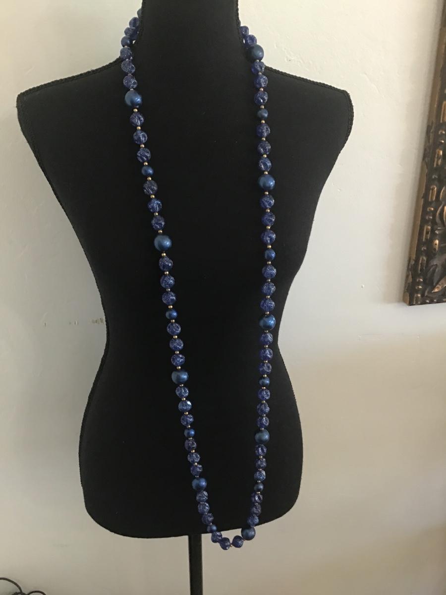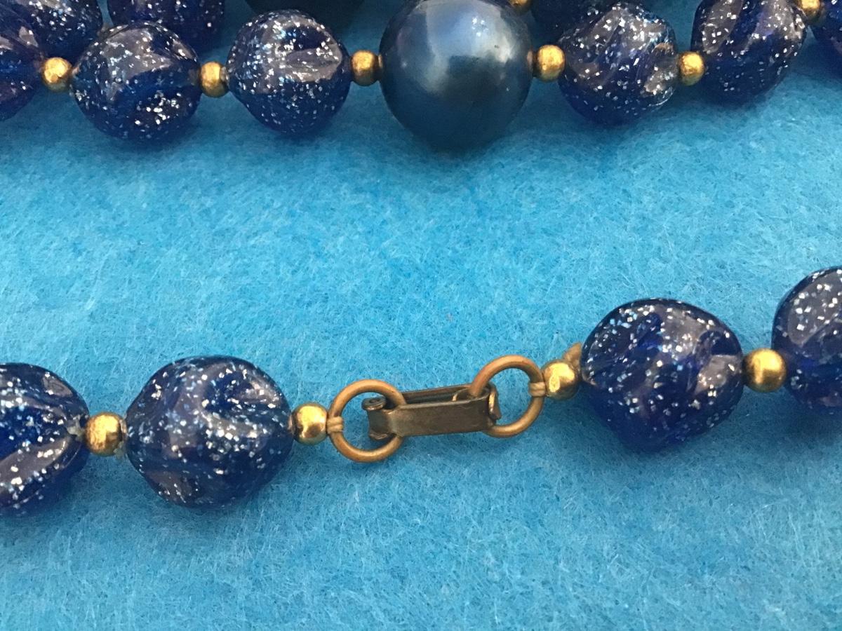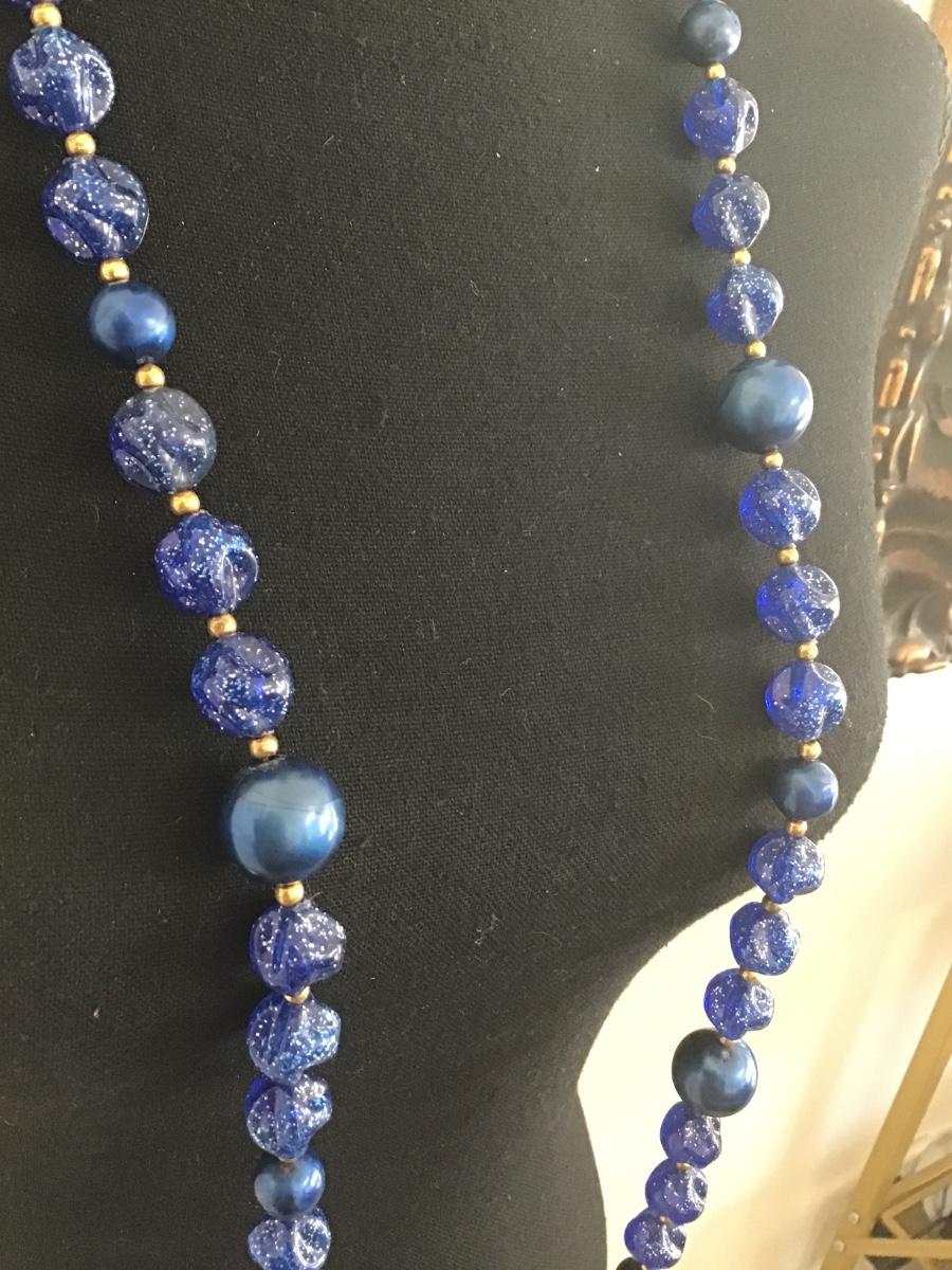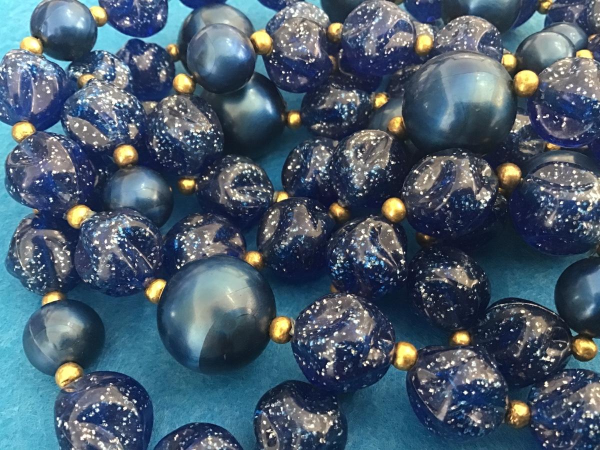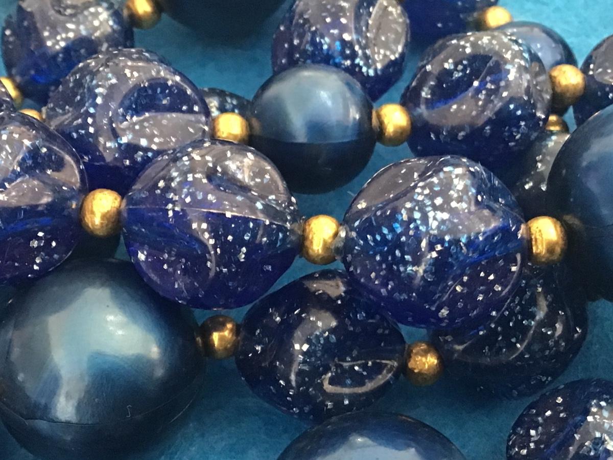 Vintage Royal Blue Glitter Necklace Faux Beads