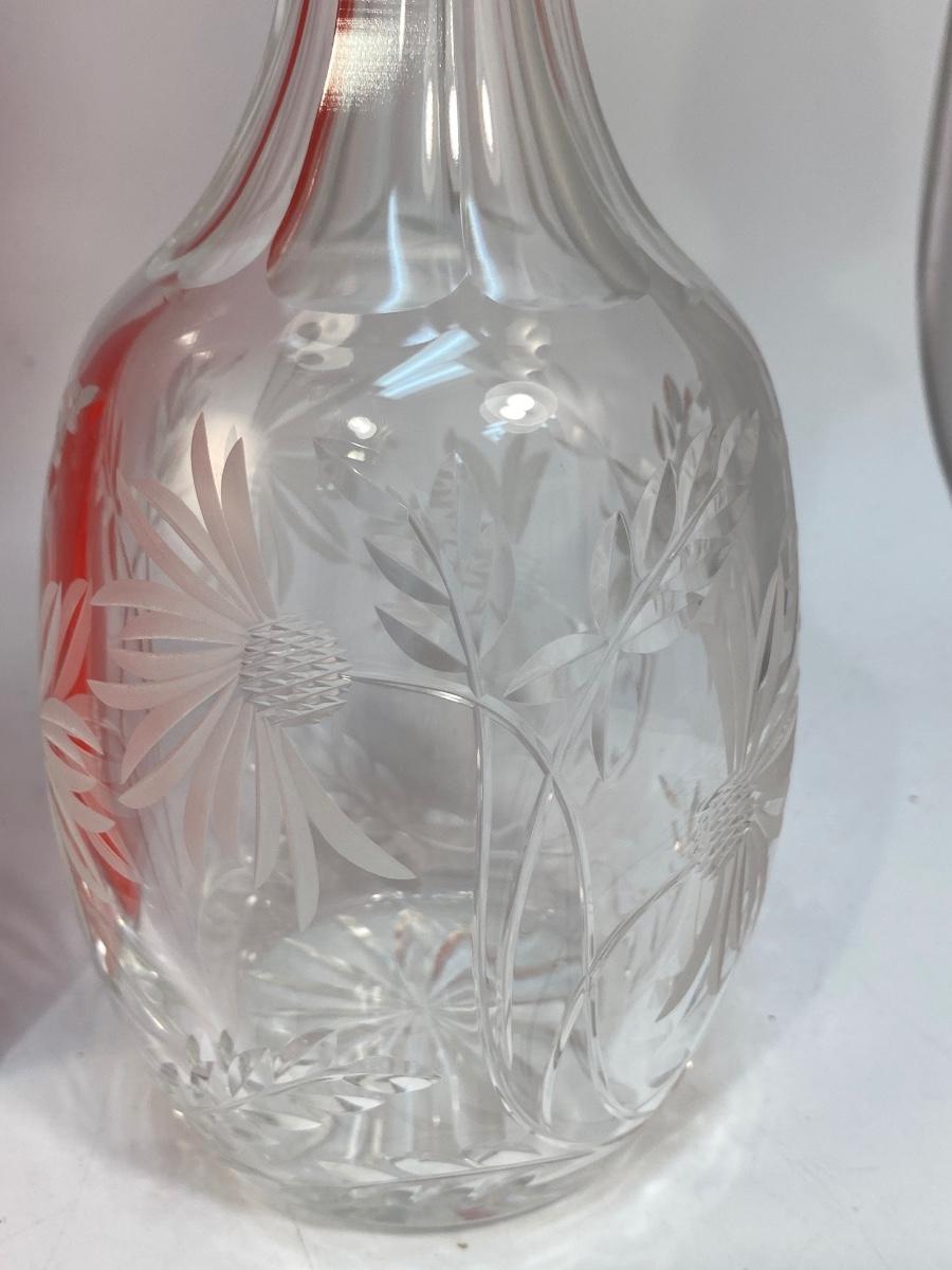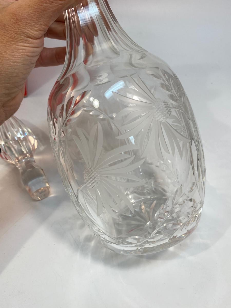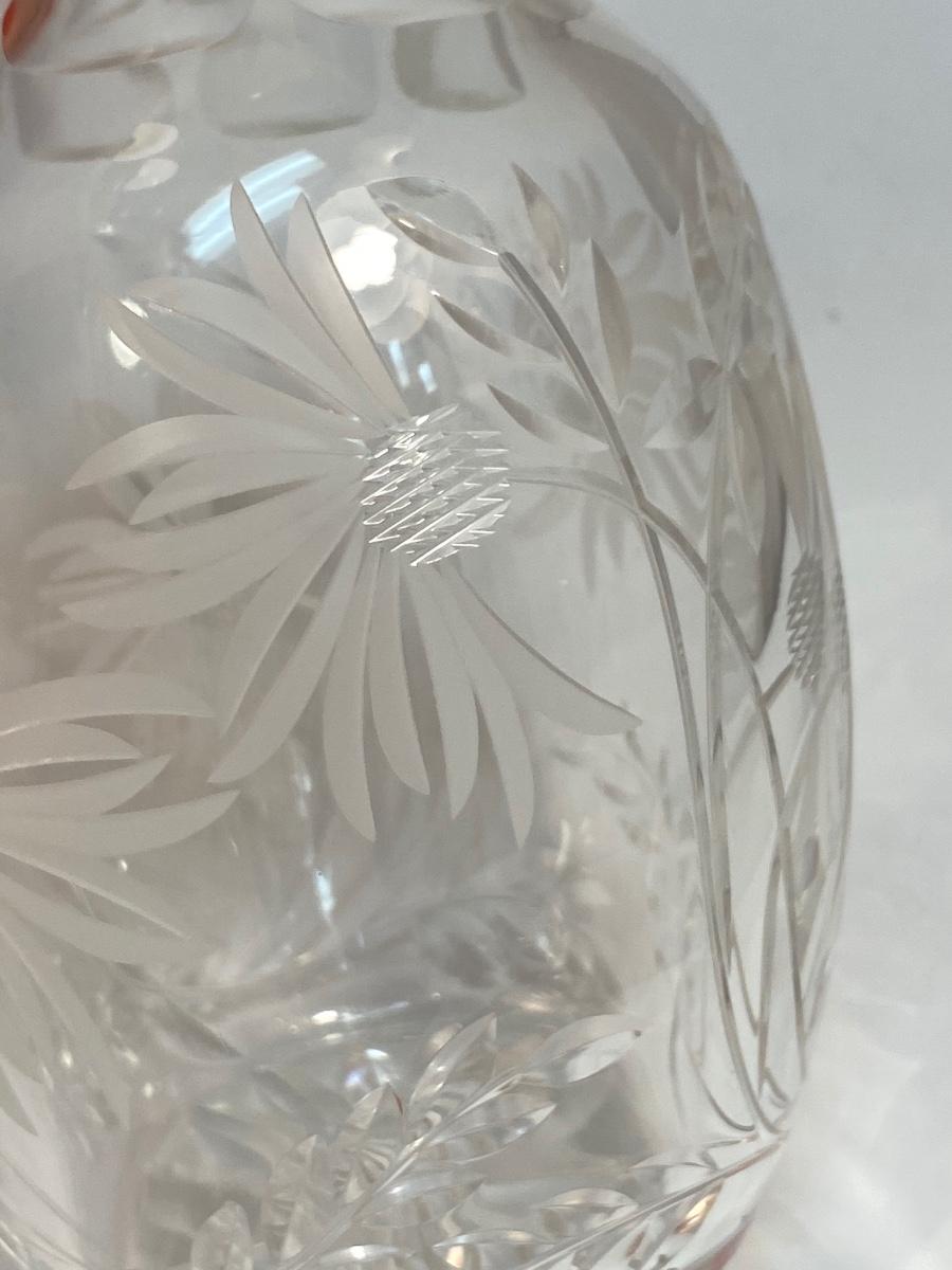 Vintage Royal Brierley English Lead Crystal Decanter Bottle Floral Etched in Box